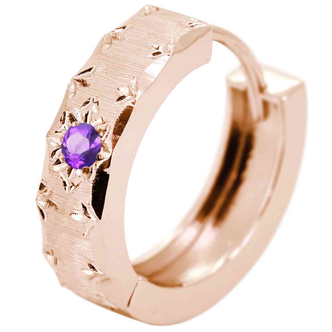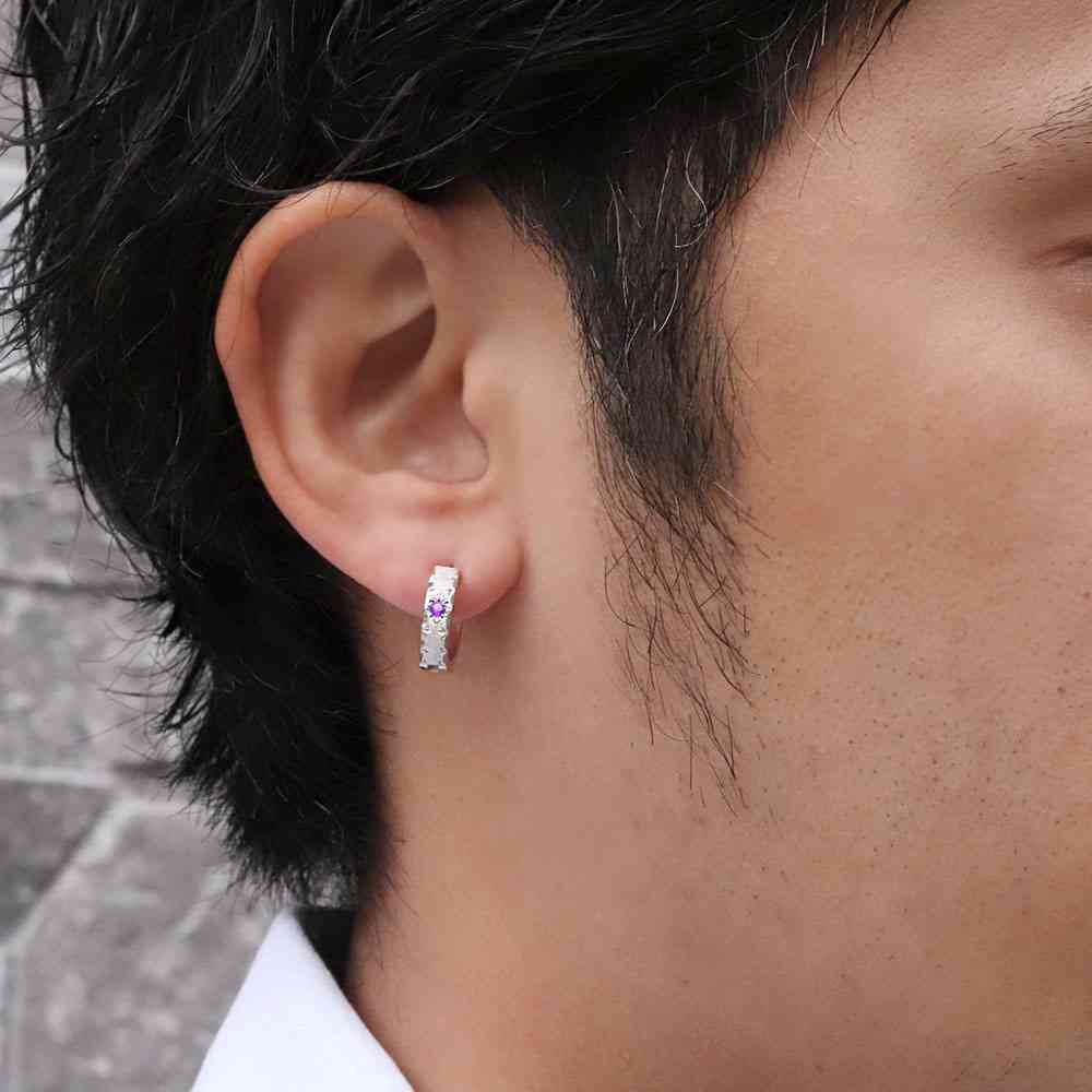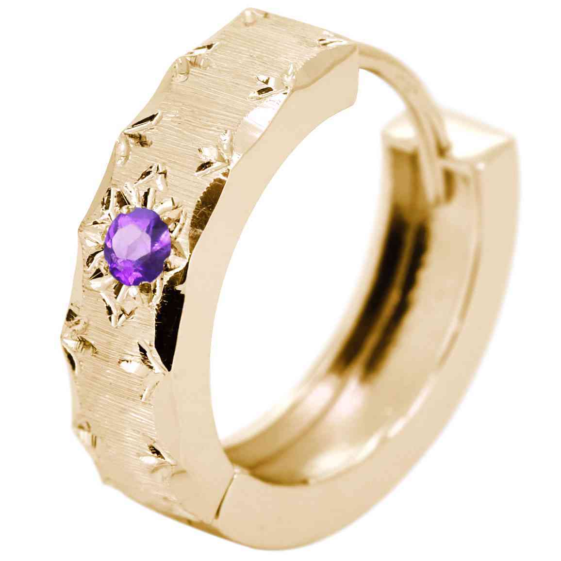 2月誕生石アメジストを使用した10金製の、メンズフープピアスです。
