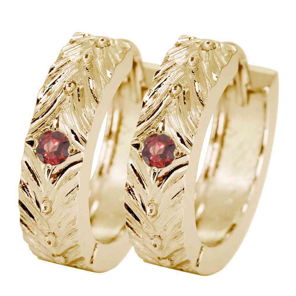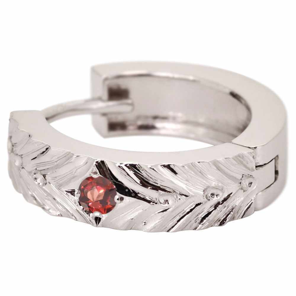 1月誕生石ガーネットを使用した10金製の、レディースフープピアスです。