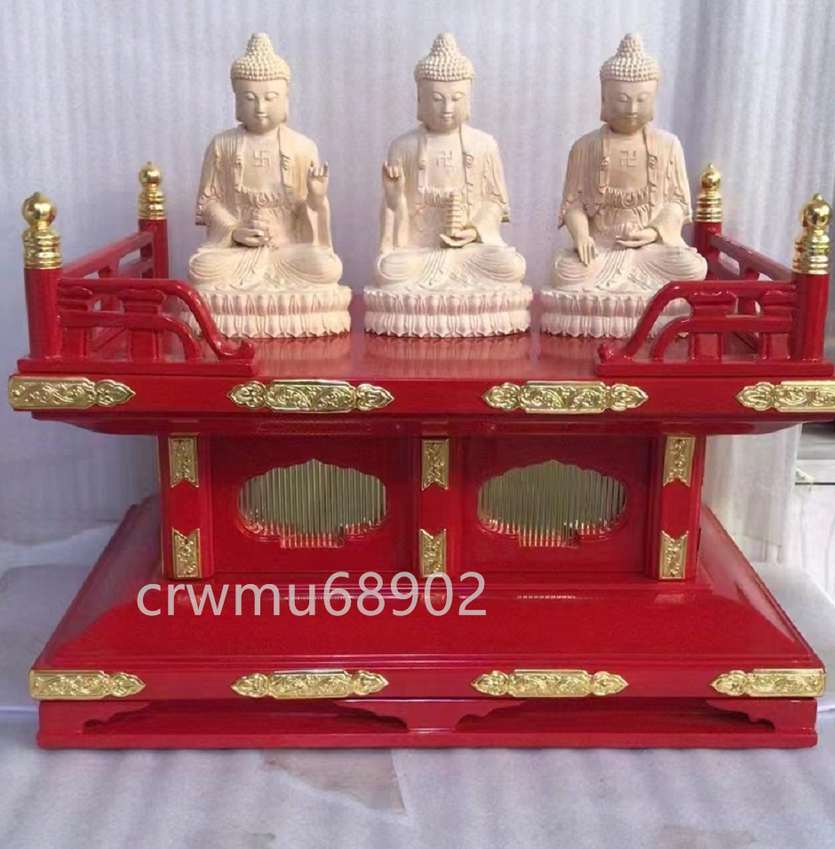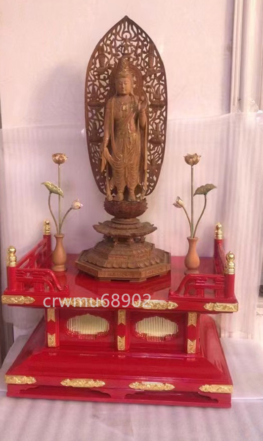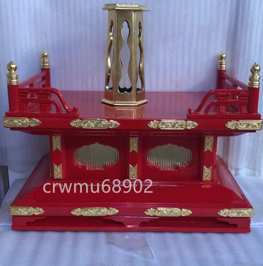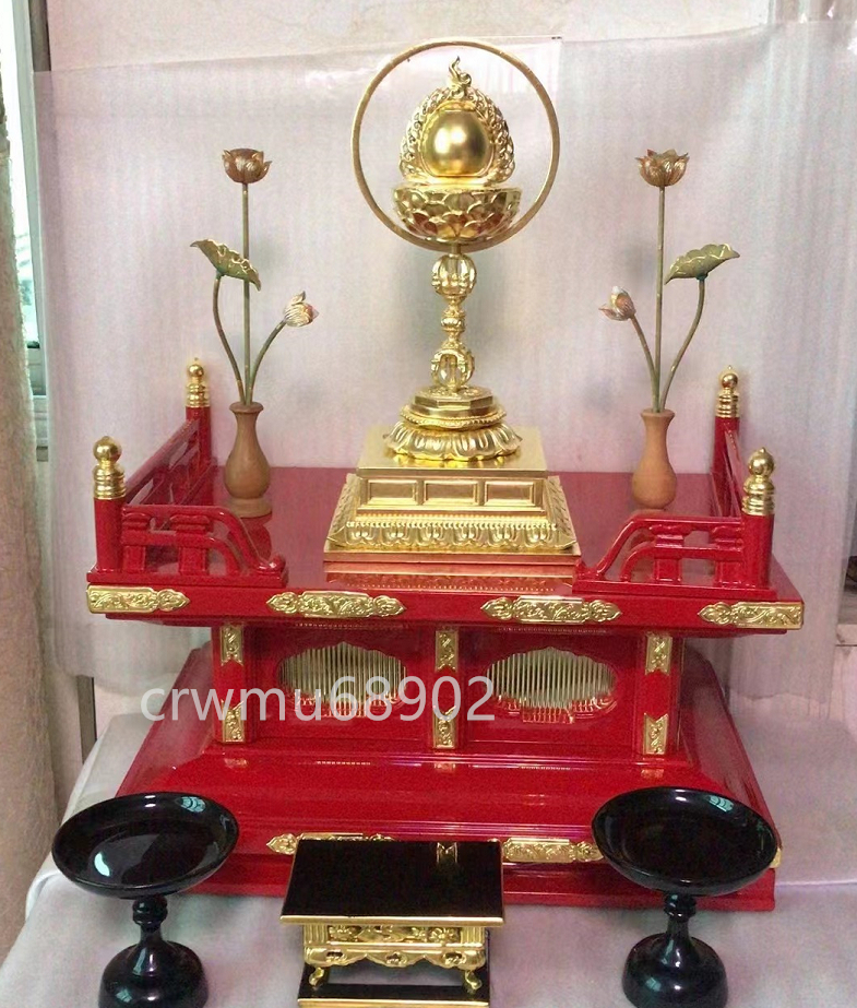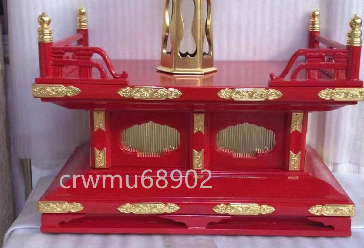 仏教美術 木造須弥壇 本金鍍金金具 高級仏壇の須弥壇 朱塗り 木製 幅さ36cm 高さ20cm