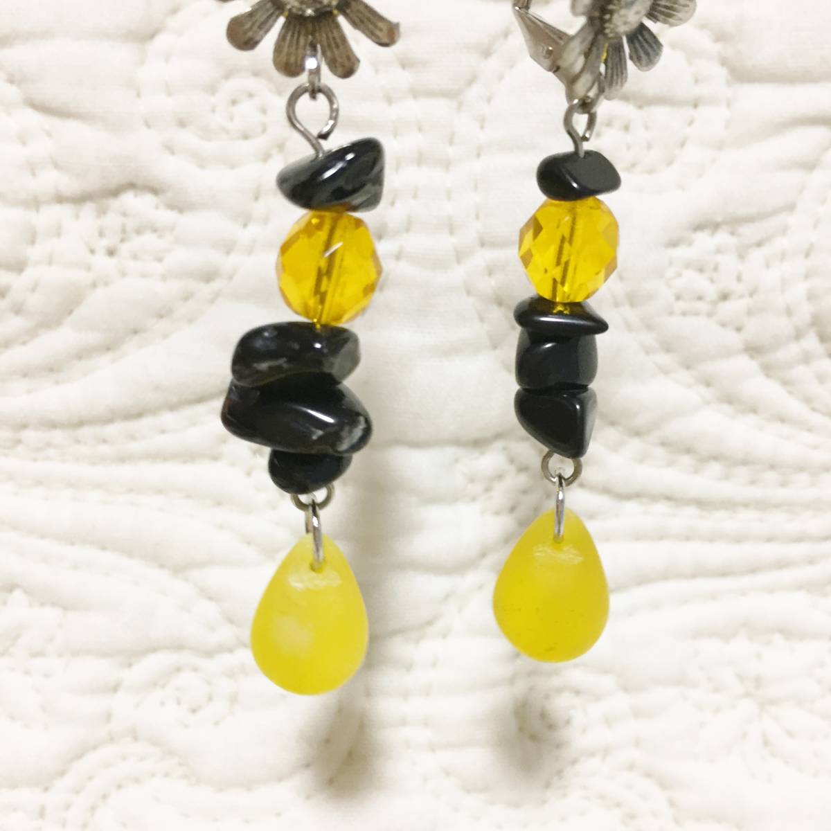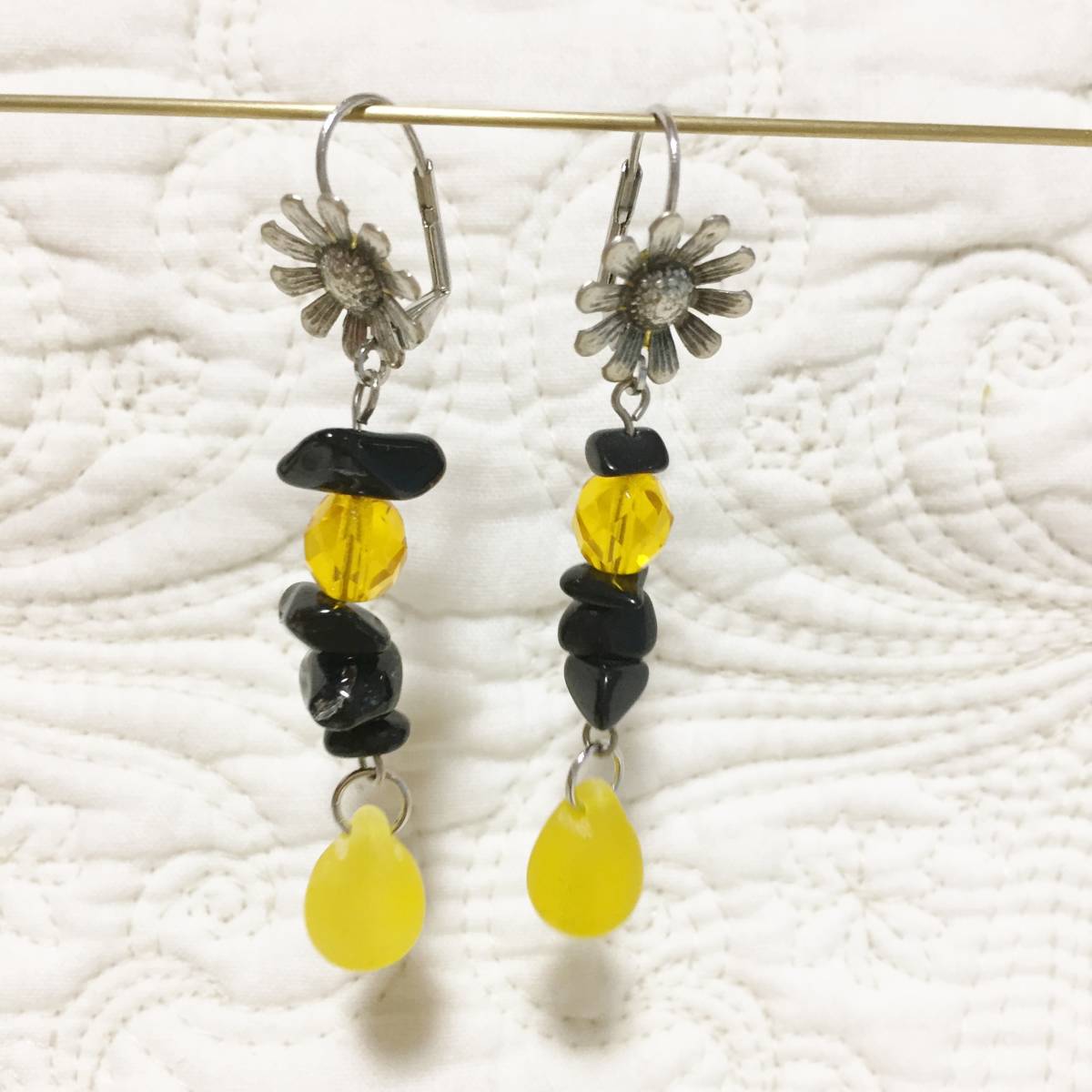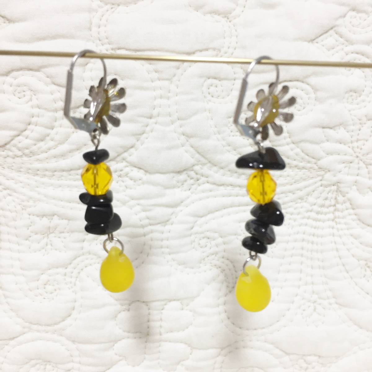 ★新品 百貨店ブランド imac ビーズ×花 ピアス 黄色×黒です。
