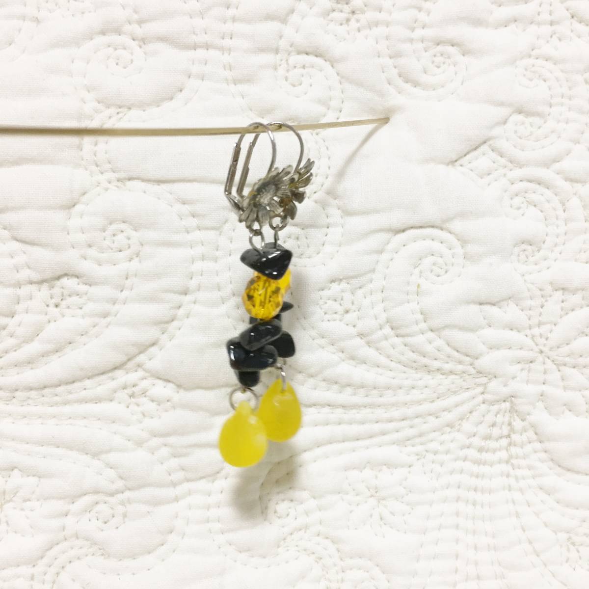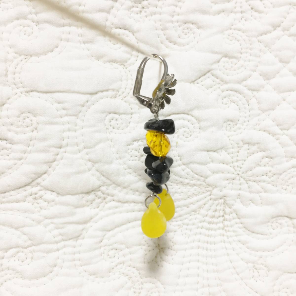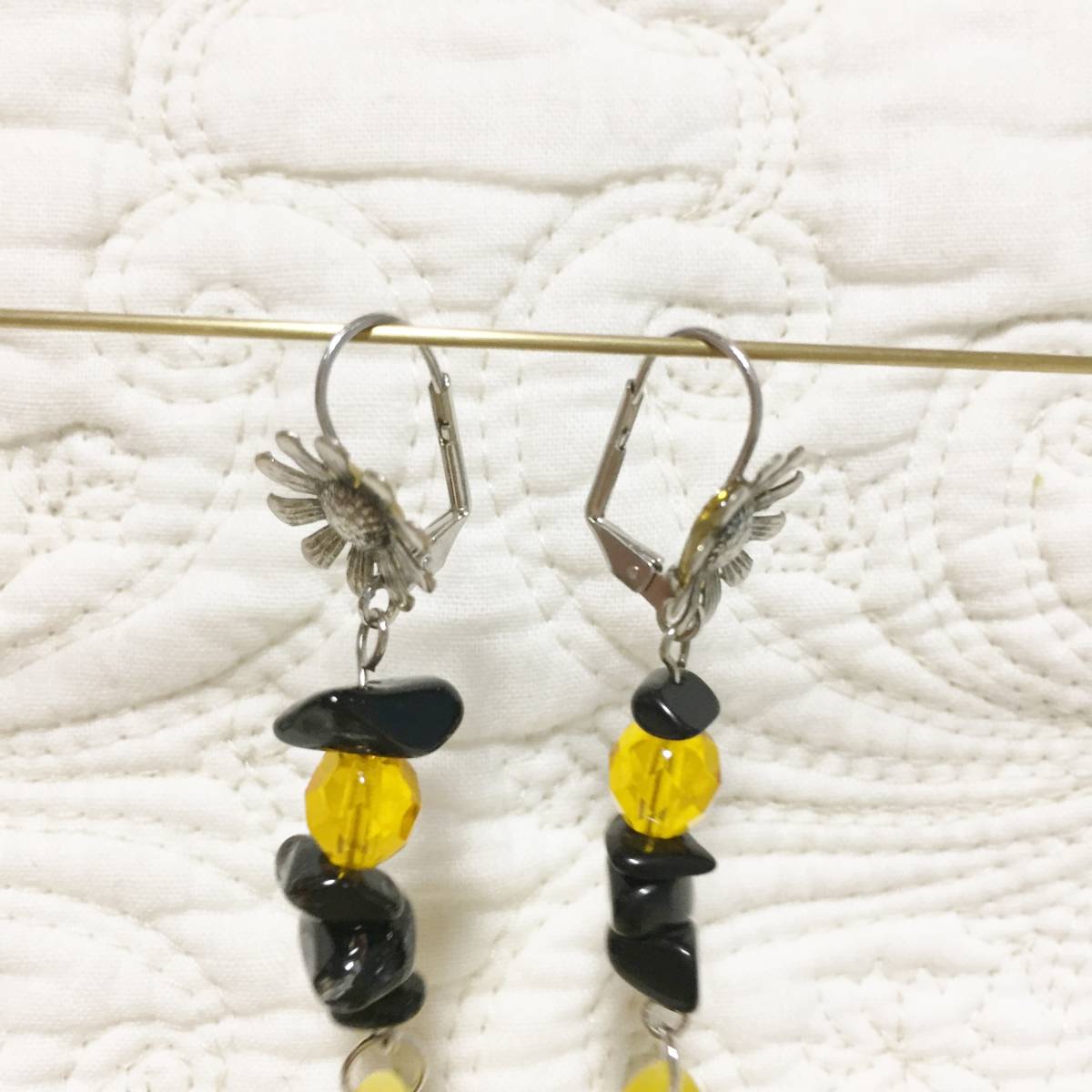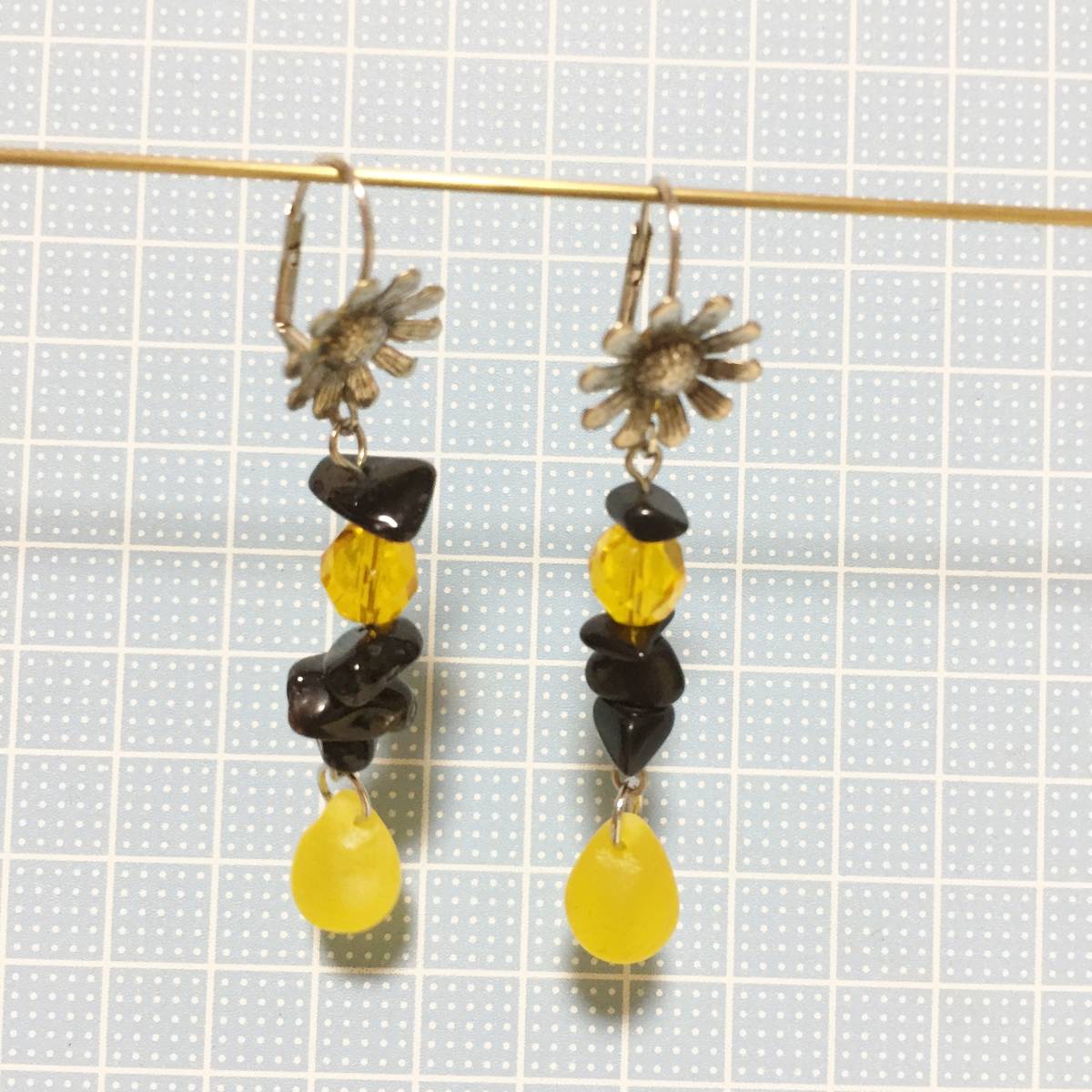 ★新品 百貨店ブランド imac ビーズ×花 ピアス 黄色×黒です。