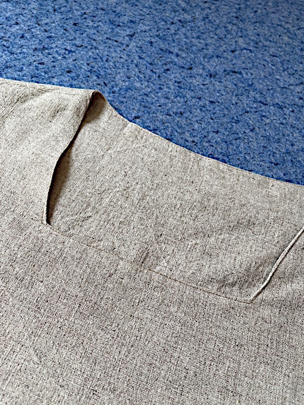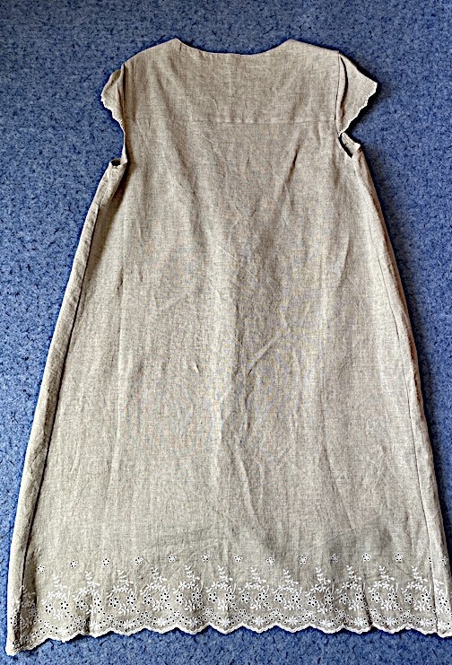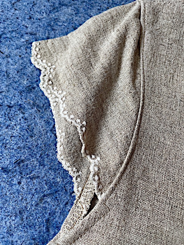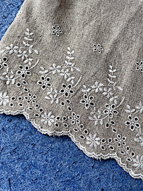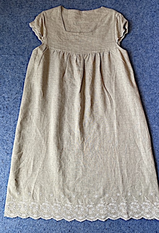 HMSS◆ハンドメイド◆キャップスリーブス スモッグ ワンピース◆リネン &スカラップレース 裾 袖先