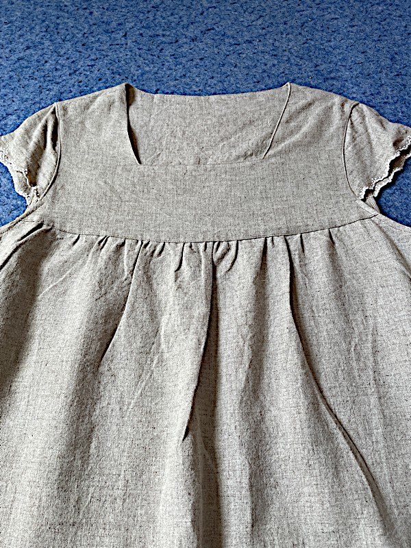 袖も短めキャップスリーブ、見頃もスモッグタイプなのでゆったりです。