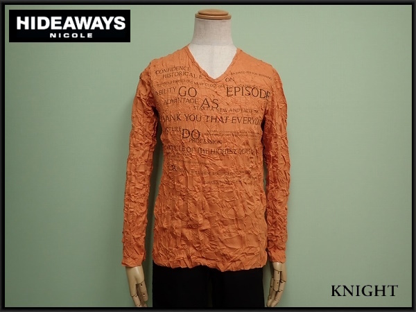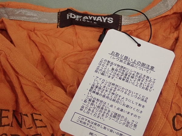 | HIDEAWAYS ハイダウェイのカットソーです。シワ加工でとても存在感のあるデザインですね。 素敵にお使い頂けると思います。気になる方は是非ご検討下さい。 | |