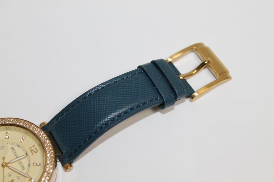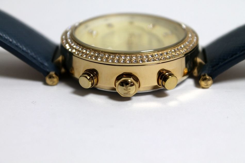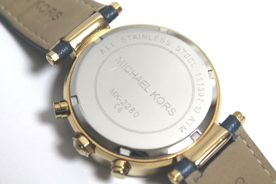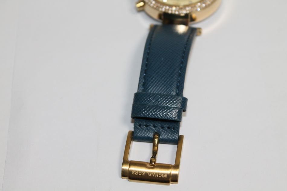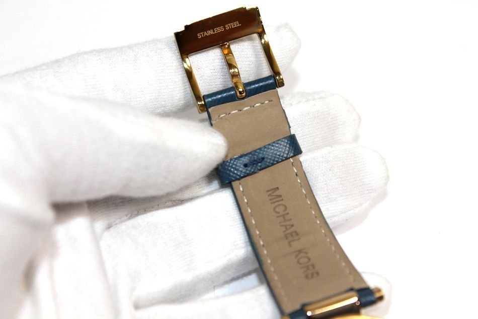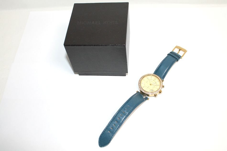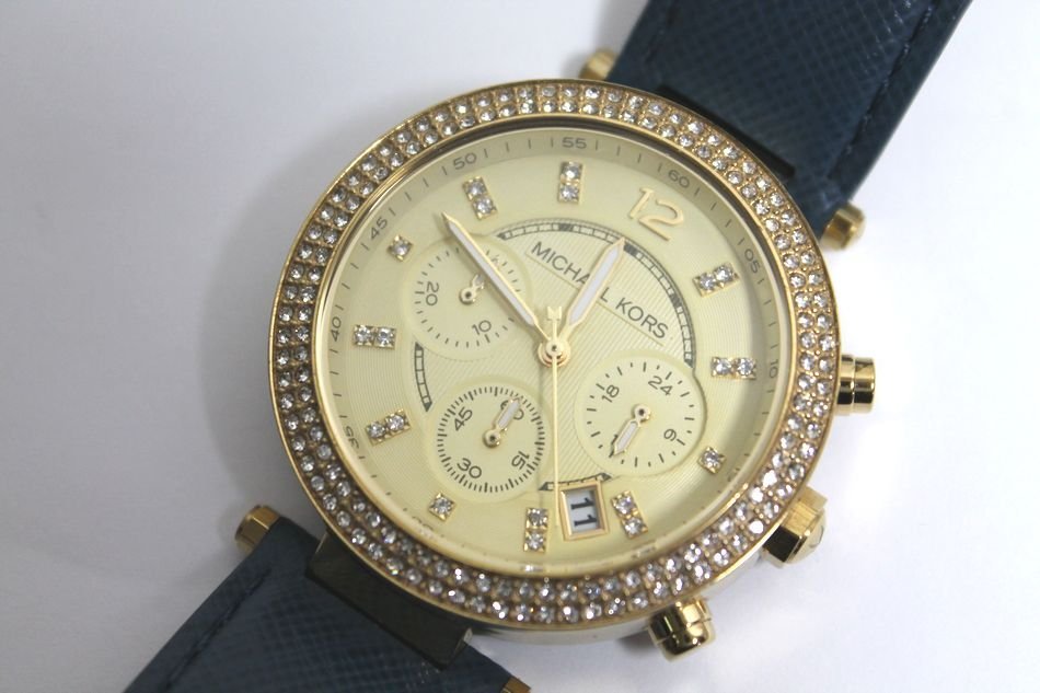 中古 MICHAEL KORS レディース腕時計 MK-2280 3針 デイト クロノ SS 女性用 クォーツ クリーム ゴールド系 ラインストーン マイケルコース