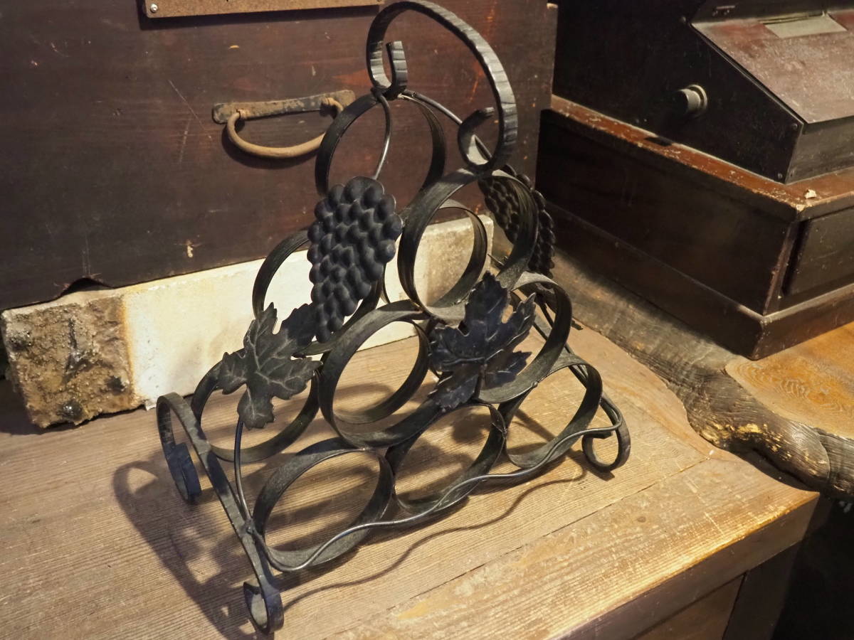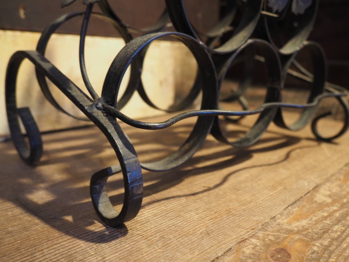 【フランス蚤の市6連ワインホルダー】古道具アンティークシャビーキャリー骨董アイアンインテリアカフェ店舗什器バーテーブルパーティー