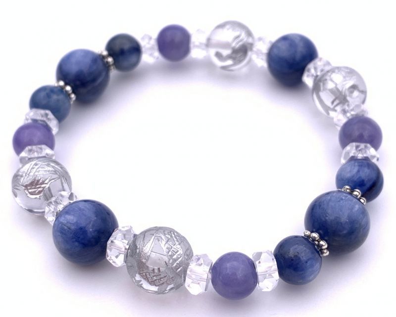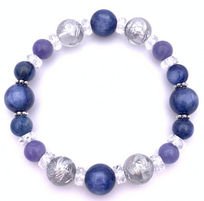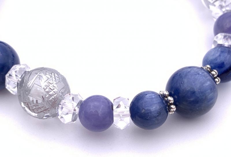 風水四神!天然石銀彫り水晶&タンザナイト&カヤナイトのブレスレット