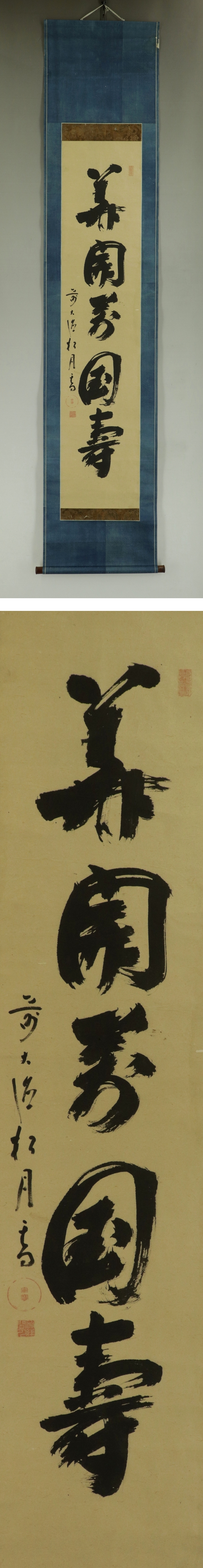 | №110569【真作】臨済宗大徳寺 宙宝宗宇【華開萬国壽】◆紙本◆合箱◆掛軸 | |