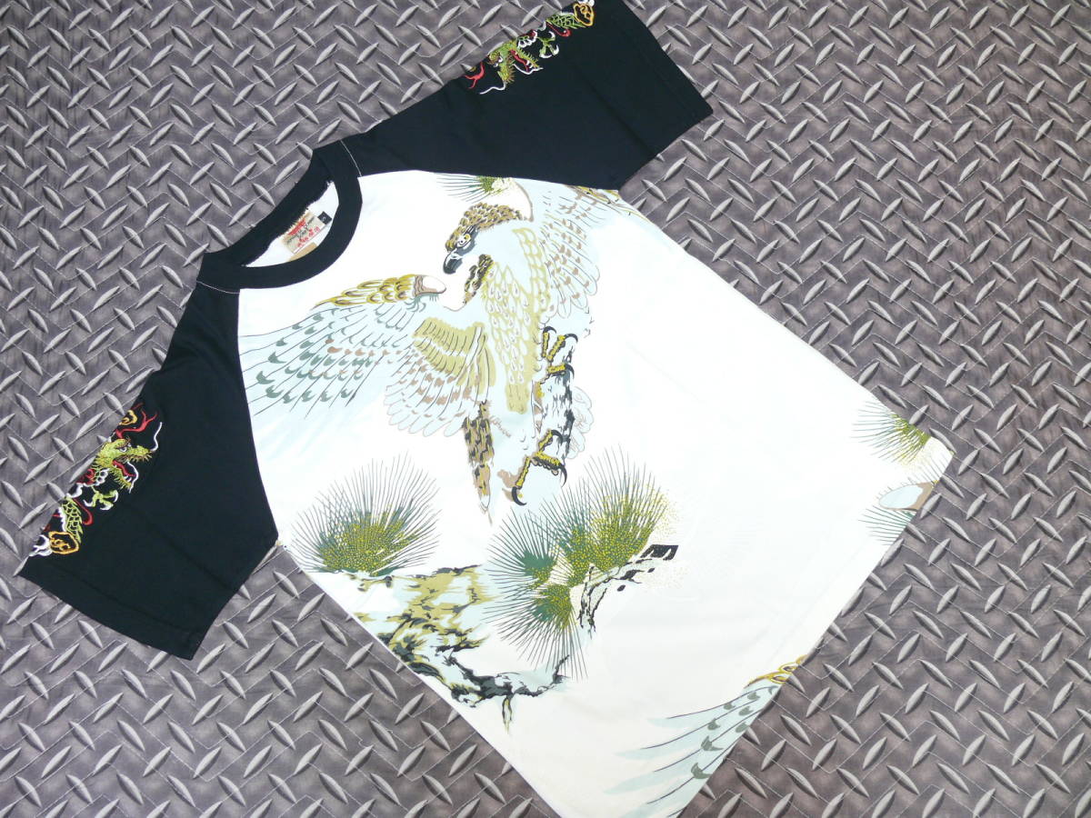>>♪花旅楽団 SCRIPT スクリプト ◆鷹龍柄トライバル 刺繍プリントTeeシャツ 未使用品の出品です。