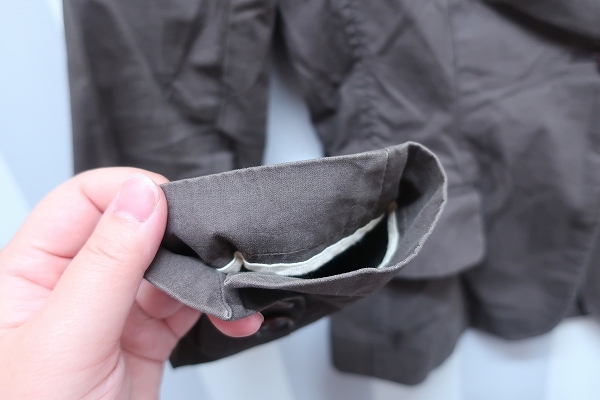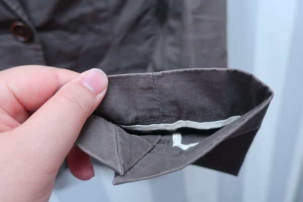 襟の内側に薄汚れと折り目に色あせ、うす黄ばみ、