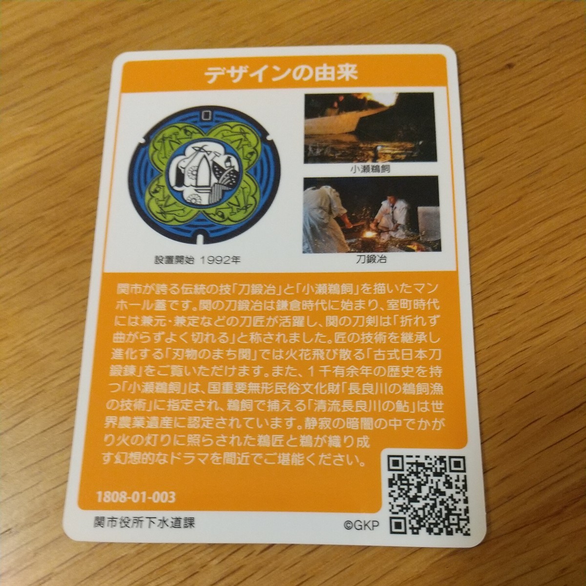 マンホールカード 岐阜県関市 刀鍛冶 刀匠 刀工 小瀬鵜飼 鵜飼い 21-205-A001 388-51-7-1 1808-01-003