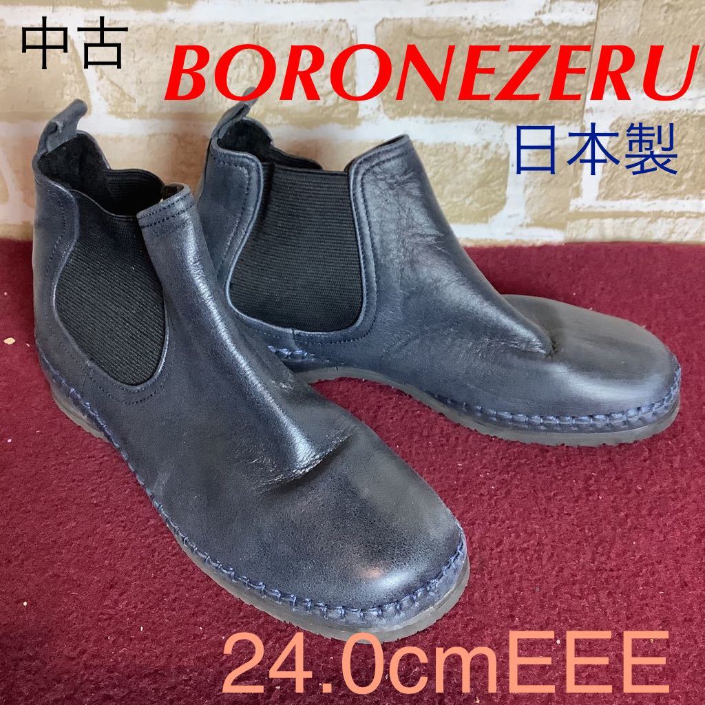 【売り切り!送料無料!】A-93 BORONEZERU!サイドゴアブーツ!24.0cmEEE!ネイビー!日本製!おしゃれ!ショートブーツ!中古!