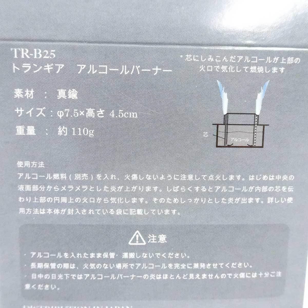※商品は画像にあるものがすべてとなります。 【仕様】 ブランド:トランギア タイプ:アルコールバーナー スピリットバーナー [プリヒーター(TR-FV21)付] 型番:TR-B25 |
