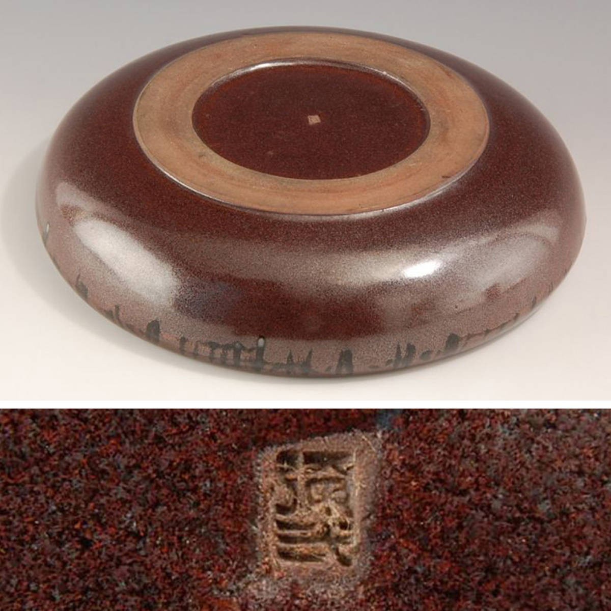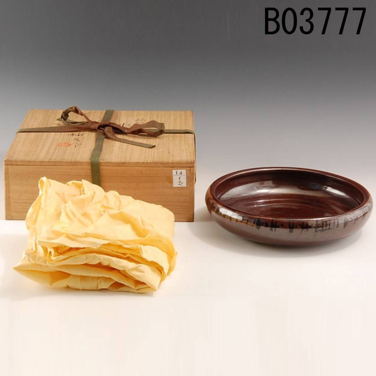 B03777 楠部彌弌 鉄砂釉彩水盤 文化勲章受章:真作