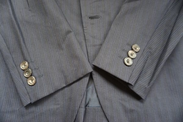 大きく目立った汚れなどなくきれいなお品物です。 2ボタン、背抜き、センターベンツ 表記サイズ:2 色:ネイビー系 素材:毛99 シルク1 裏地/キュプラ100 実寸サイズ:着丈 約70cm 身幅 約51cm 肩幅 約44cm 袖丈 約61cm ※サイズ寸法は平置き、素人の採寸となります。 多少の誤差があることをあらかじめご了承ください。 ※ブランドやデザインによって表記サイズと実寸サイズが異なる場合があります。必ず実寸サイズをご参考のうえご入札ください。 ※商品の色味は個人的なものです。実物に近い色味を掲載するように努めてはおりますが、公式を調べている訳ではありませんのであらかじめご了承ください。 |