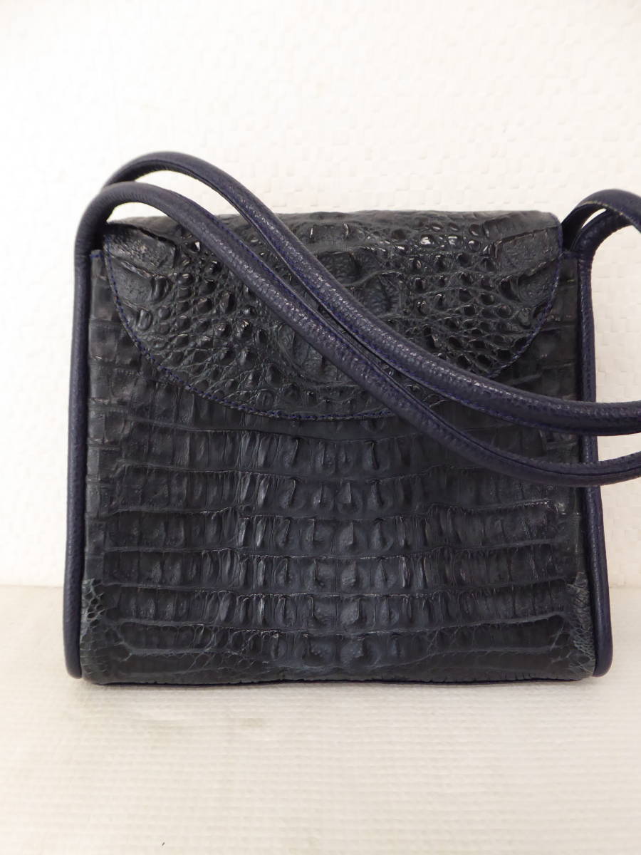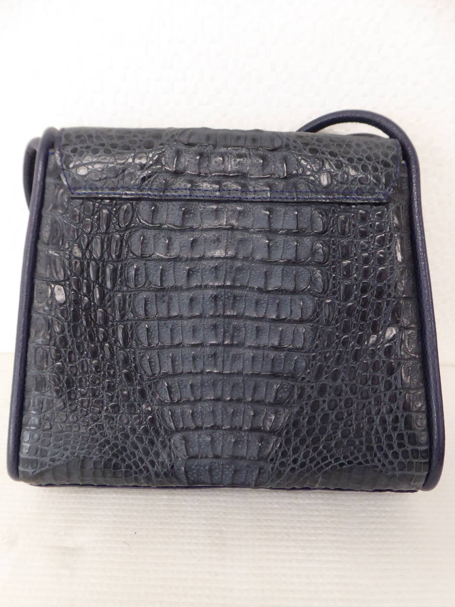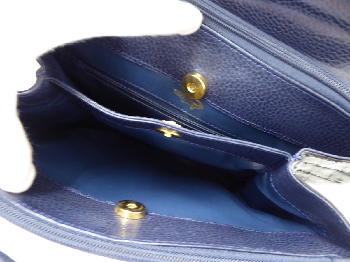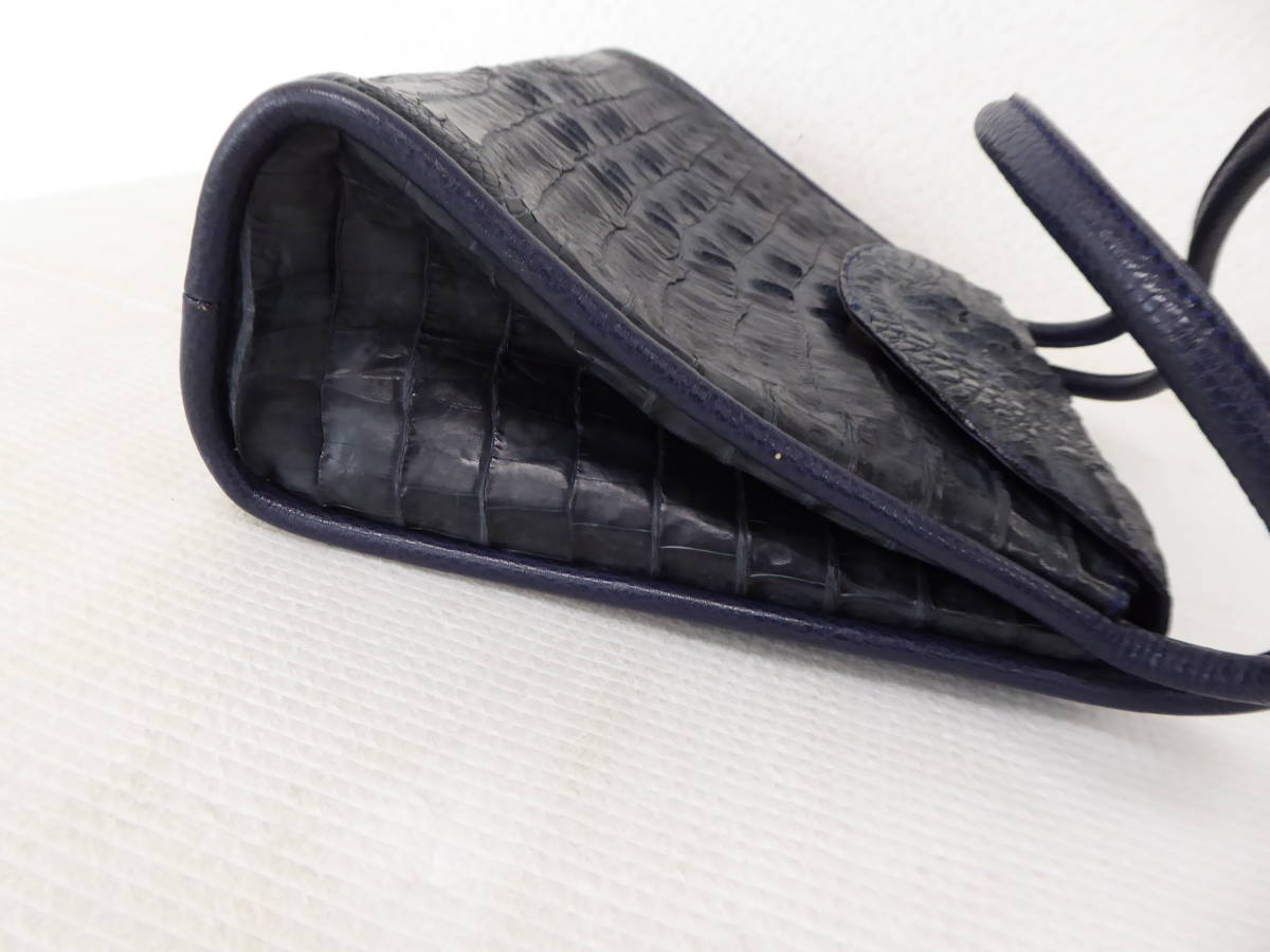 | 美品 ワニ革 カイマン レザー ショルダー ハンド バッグ ネイビーブルー | |||