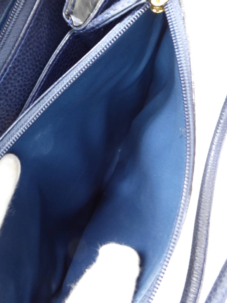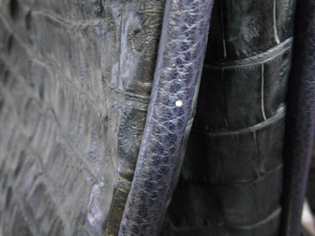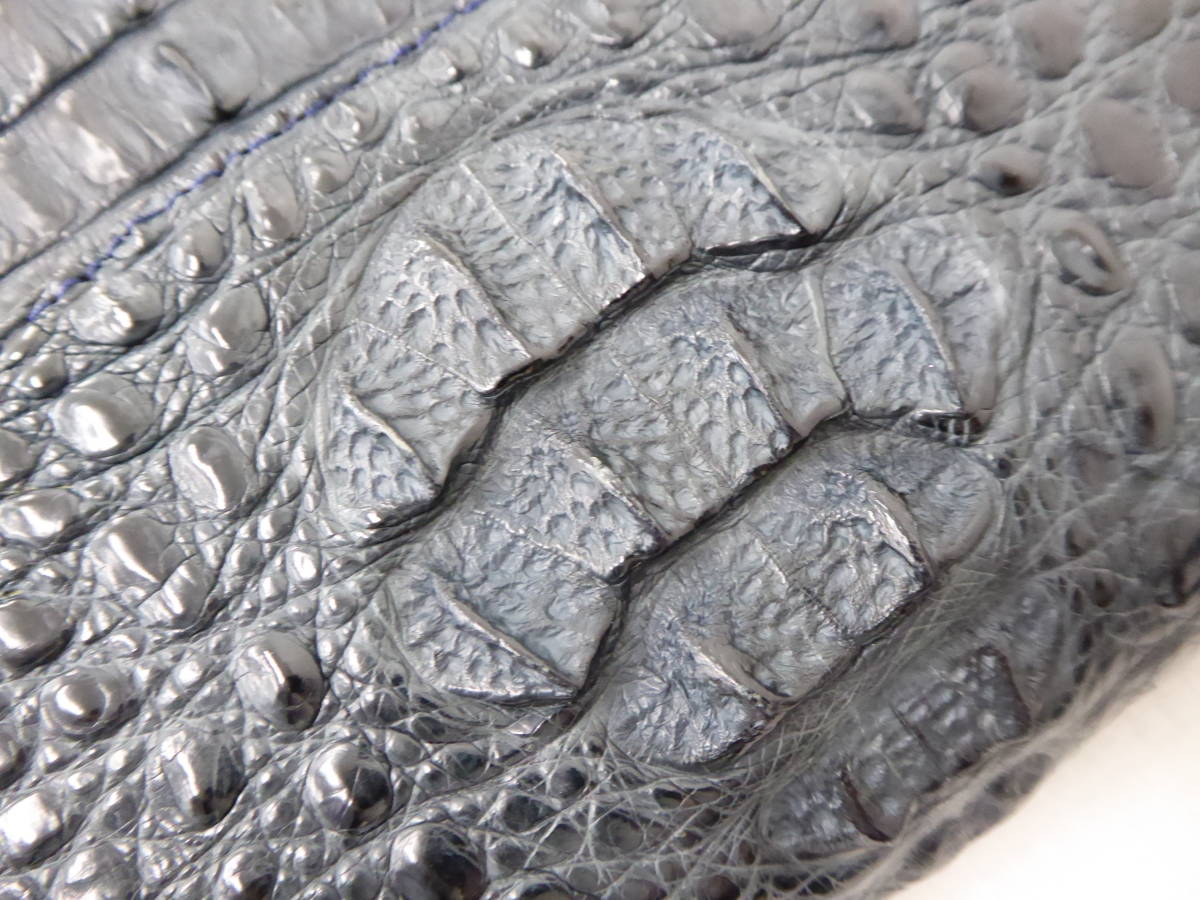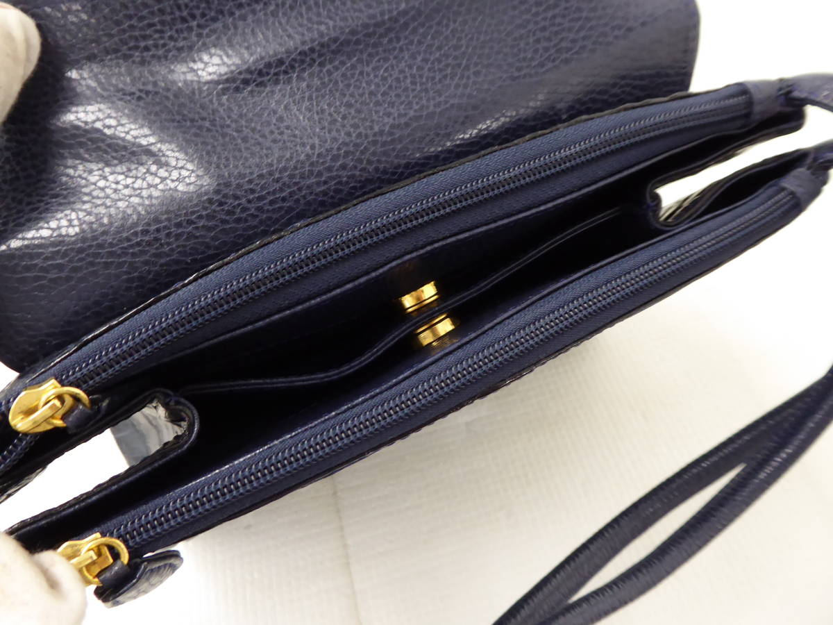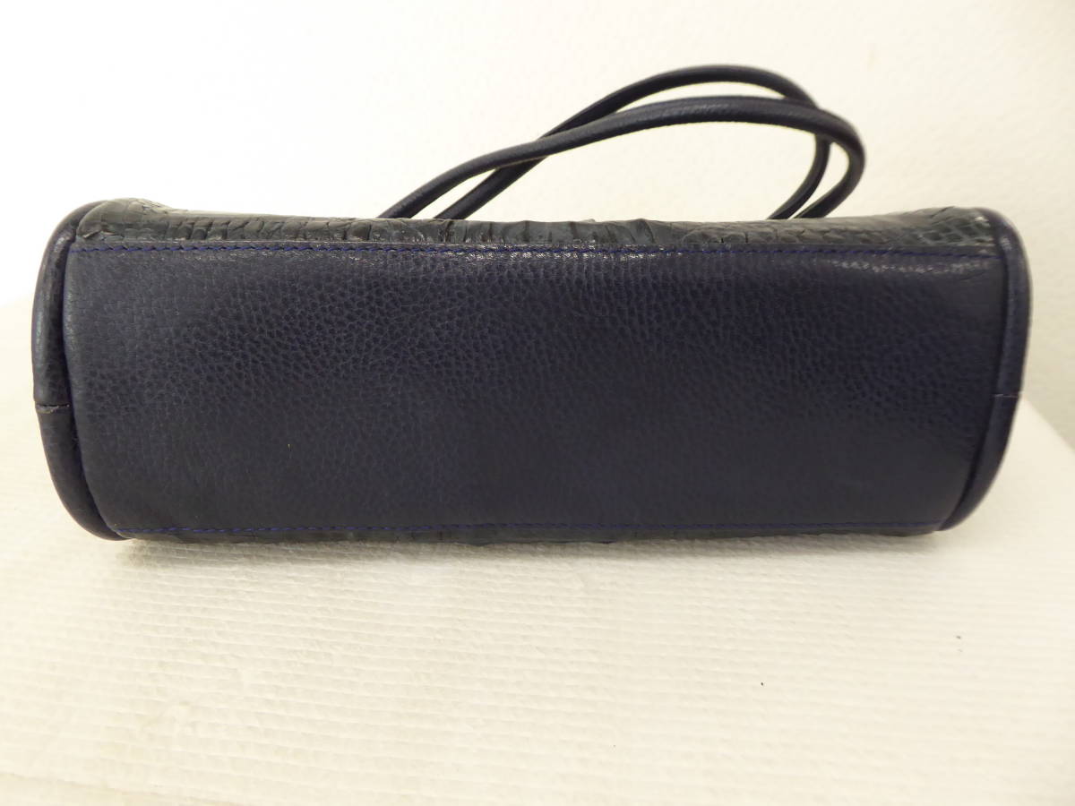 | 美品 ワニ革 カイマン レザー ショルダー ハンド バッグ ネイビーブルー | |||