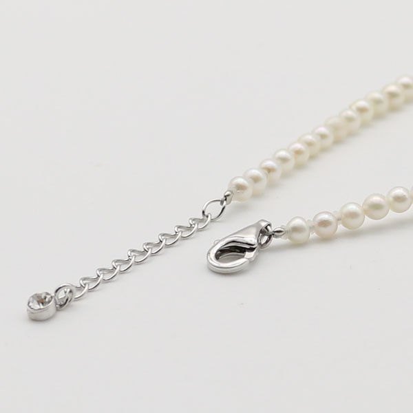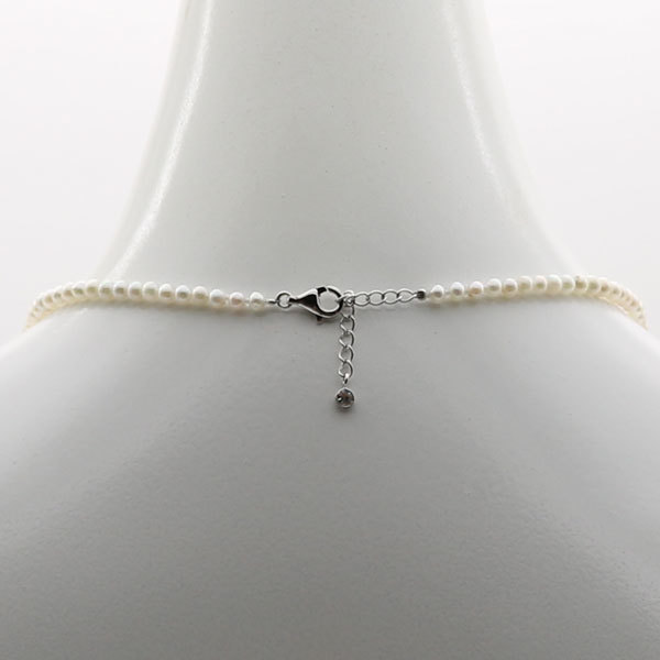 ウンド~セミラウンド型で、普段使いできるパールネックレス。金具(クラスップ)はアジャスターで約4cm長さ調節できるタイプ。(シルバー製) |