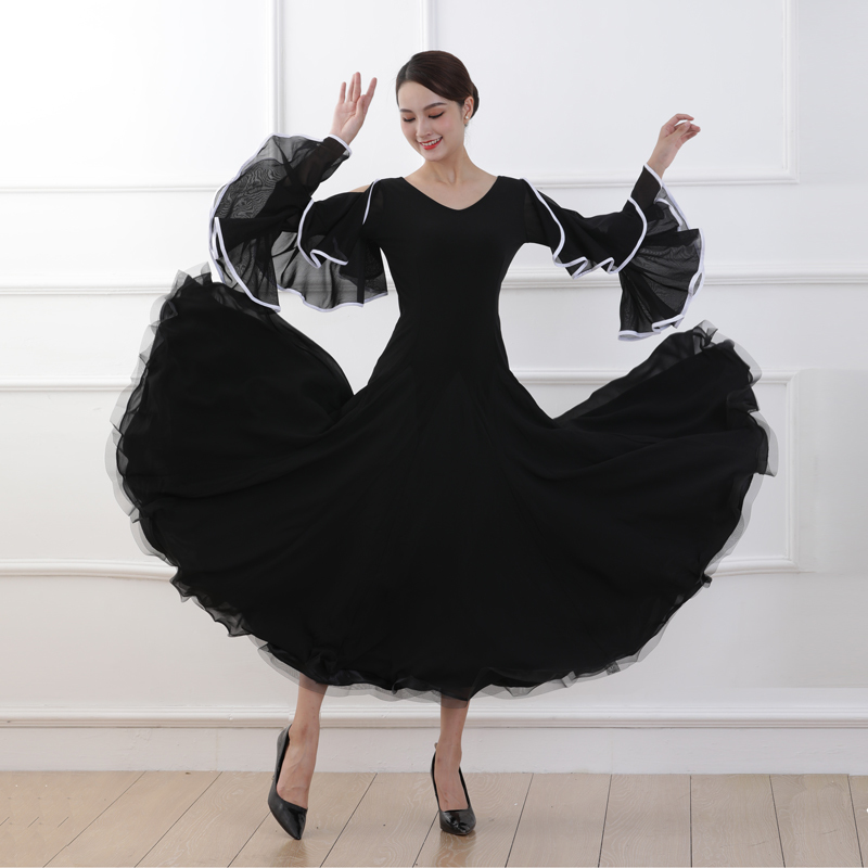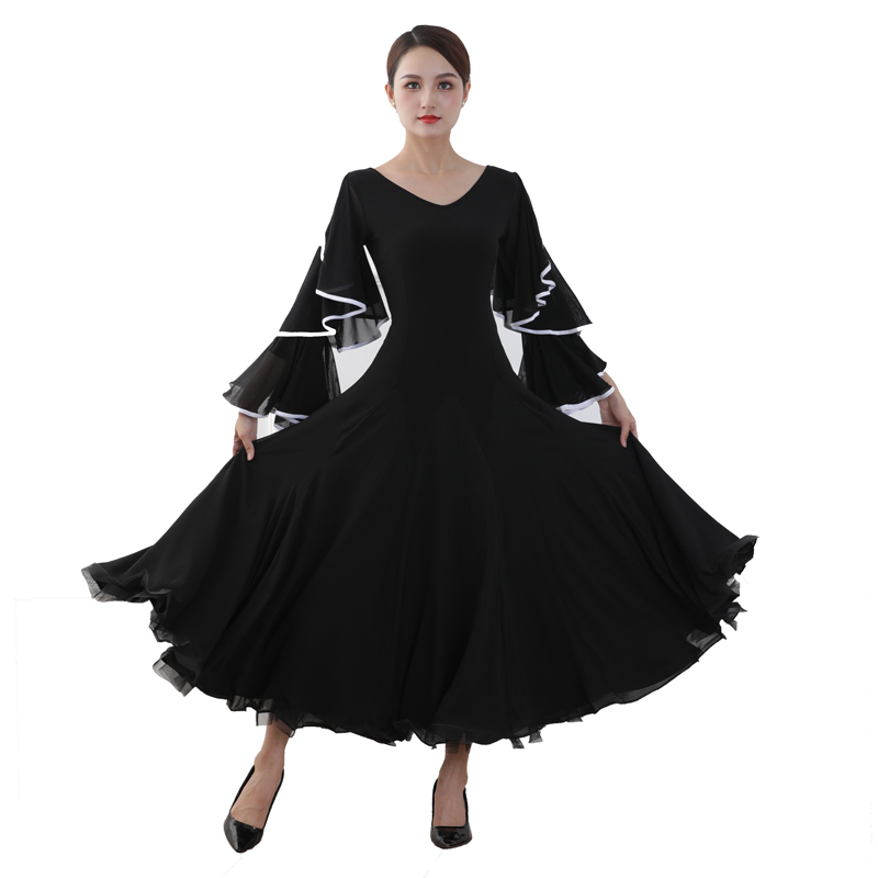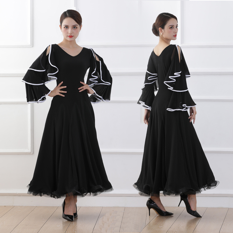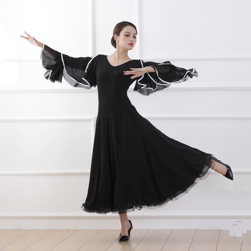 新作 モダンドレス レディース社交ダンス衣装 可愛い上品デザイン サイズオーダー可 ブラック S~XL