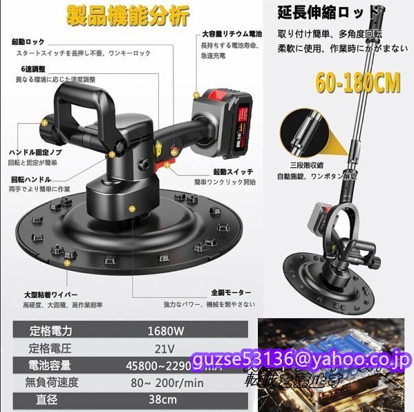 大好評★充電式トロウェル 21V ウォールサンダ モルタル コンクリート研磨機 ハンドヘルド パワートロウェル 延長ロッド付き