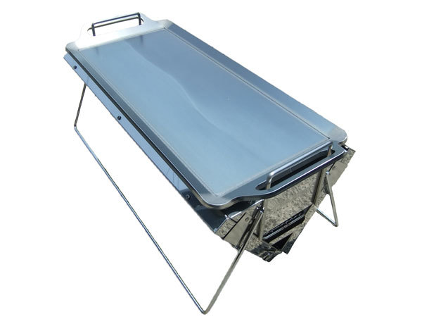 重量のある鉄板を持ち運びしやすいよう両サイドには曲線的な取っ手が付き、加熱されたときは【別売り】のサポートハンドルをお使い頂くことで、炭の補充や他のコンロへの移動が可能です。