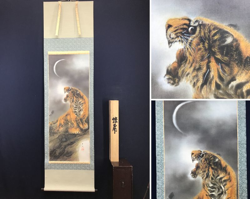 複製/堀江玉鳳/猛虎図/虎図/トラ図/工芸品//掛軸☆宝船☆AC-572