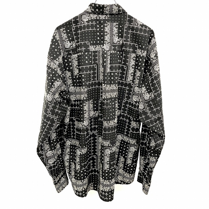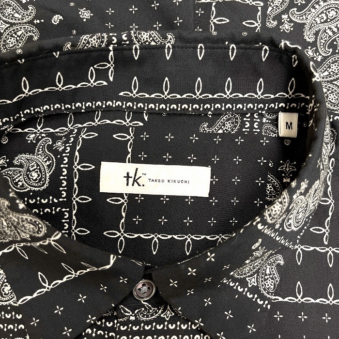 | 商品タイトル | ティーケータケオキクチ tk.TAKEO KIKUCHI 総柄シャツ 長袖 バティック ペイズリー ポケット無し ポリ100% M ブラック 黒×白 メンズ |