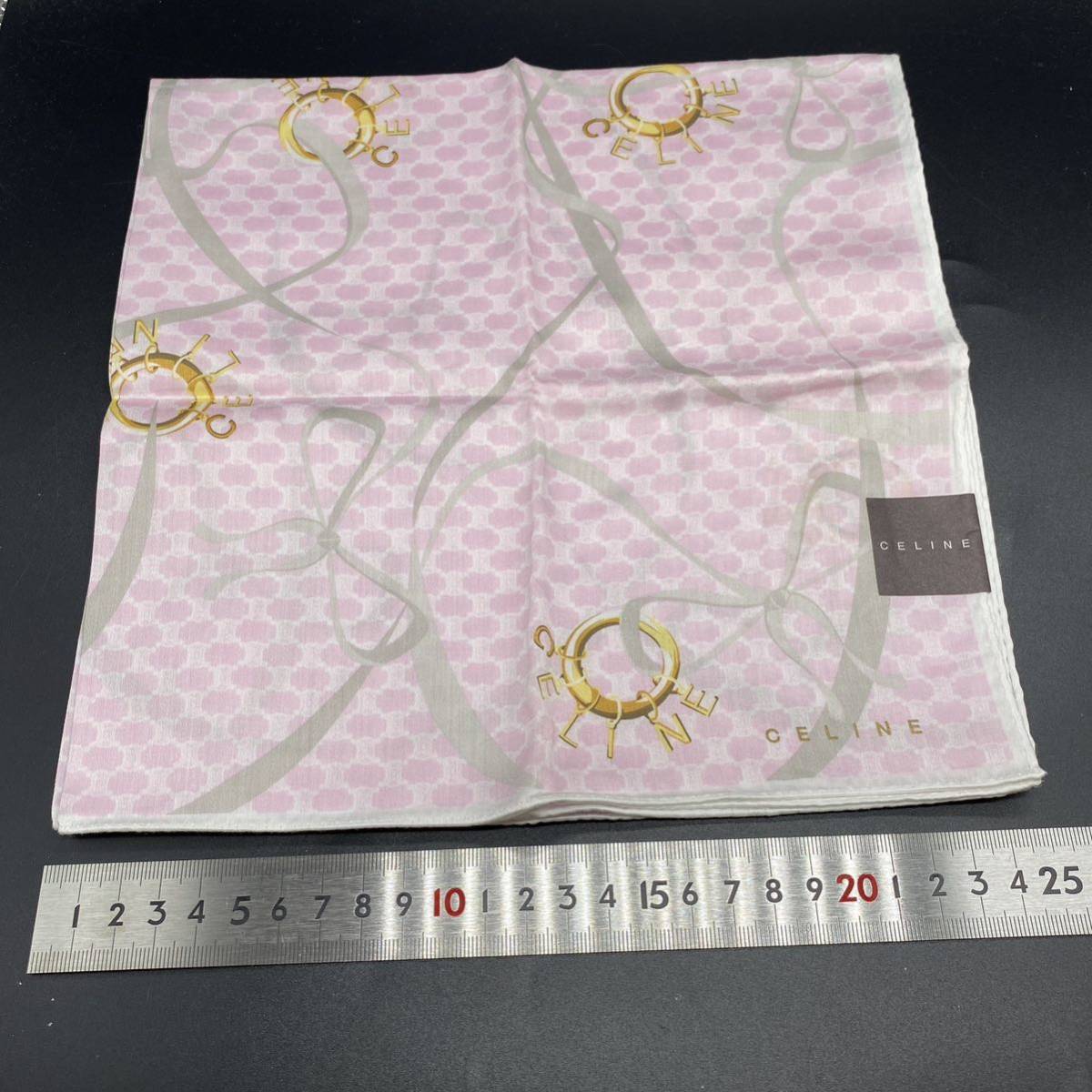 CELINE セリーヌ ハンカチ 総マカダム ライトピンク グレーリボン no.22