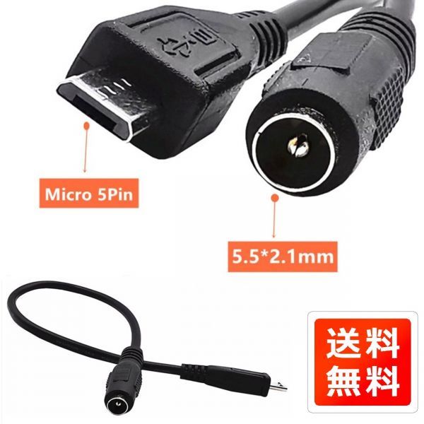 DC電源 変換ケーブル マイクロUSBオス/メス 外径5.5mm 内径2.1mm E275!送料無料!