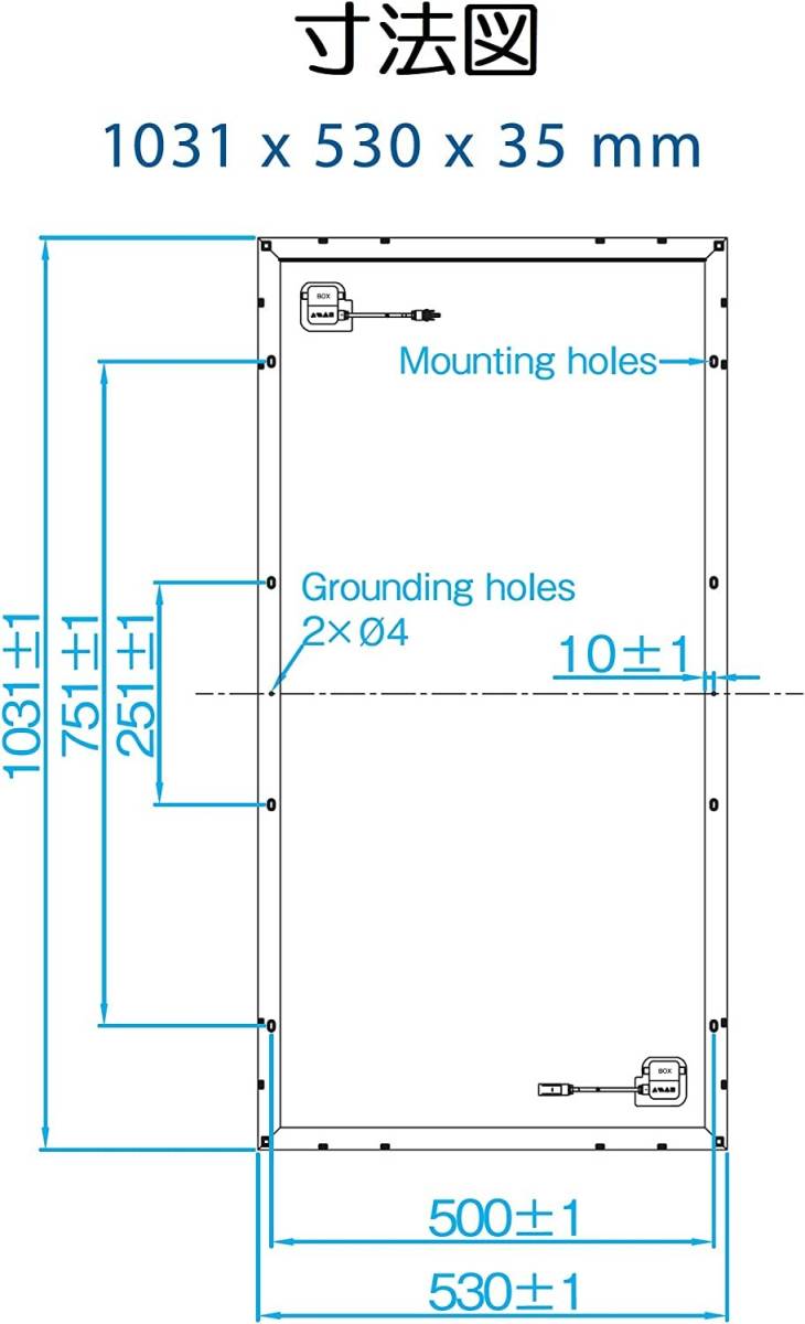 • ★【仕様】 型番:GW-E100A 最大出力:100W ・ 最大出力動作電圧:18.2V ・最大出力動作電流:5.50A ・開放電圧:22.5V ・短絡電流:5.70A ・外形寸法:1031×530×35mm  ケーブル長さ:1000mm(MC4コネクタ付 正極:凸型 負極:凹型)