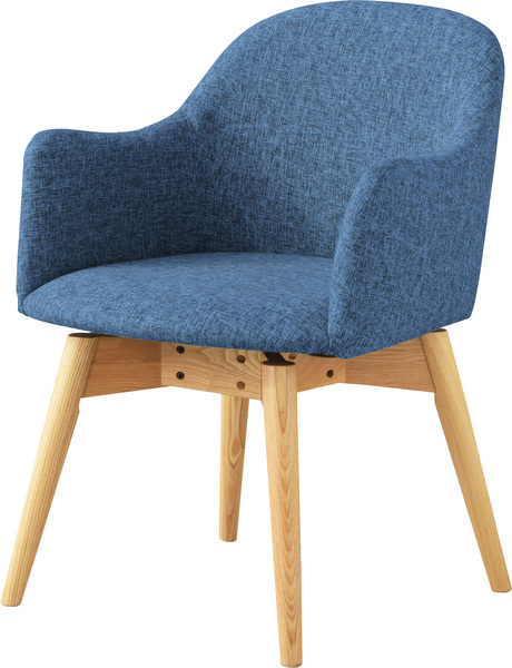カラメリ 回転式チェア 天然木(アッシュ) ウレタン塗装 ポリエステル ブルー KRM-020BL