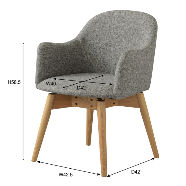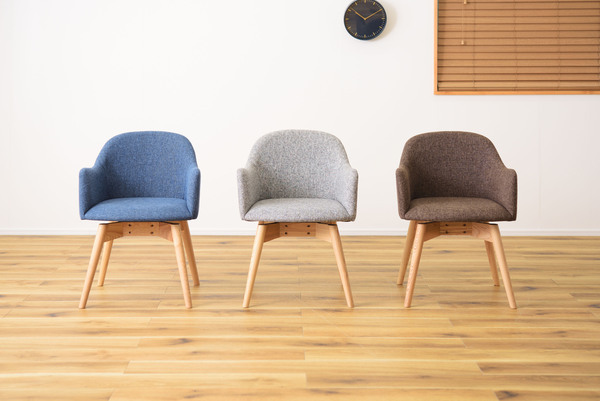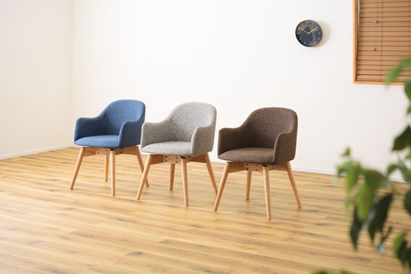 シンプルなのに、どこかやさしさを感じさせるカラメリシリーズ。落ちついた色・丸みのあるデザインを取り入れ、永く親しみやすいように仕上げました。脚部は角を落とし、ハの字に設計することで、優しい印象に。背もたれとアームが一体になったチェアは、曲線を意識したデザインでかわいらしく優しく仕上げています。背もたれとアームが一体になった身体をしっかり支えるダイニングチェア。長時間座っていても疲れにくく、ダイニングでゆったりとした時間を過ごすことができます。座面回転に関する動画はこちら:https://www.azumaya-kk.com/movie/douga/krm-020bl.html