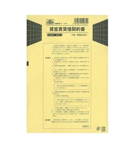 【即決】■日本法令■貸室賃貸借契約書 改良型 /HOREI /B5 /3部 保管袋2袋 //契約 3-1