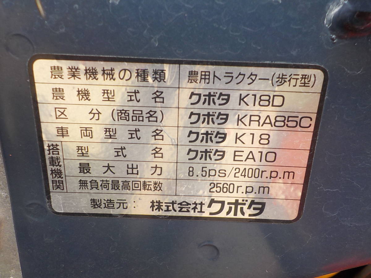 岡山発1550122000023※簡単な試運転済●クボタ●耕運機●K18D●モンローマチック付●歩行型トラクター●中古