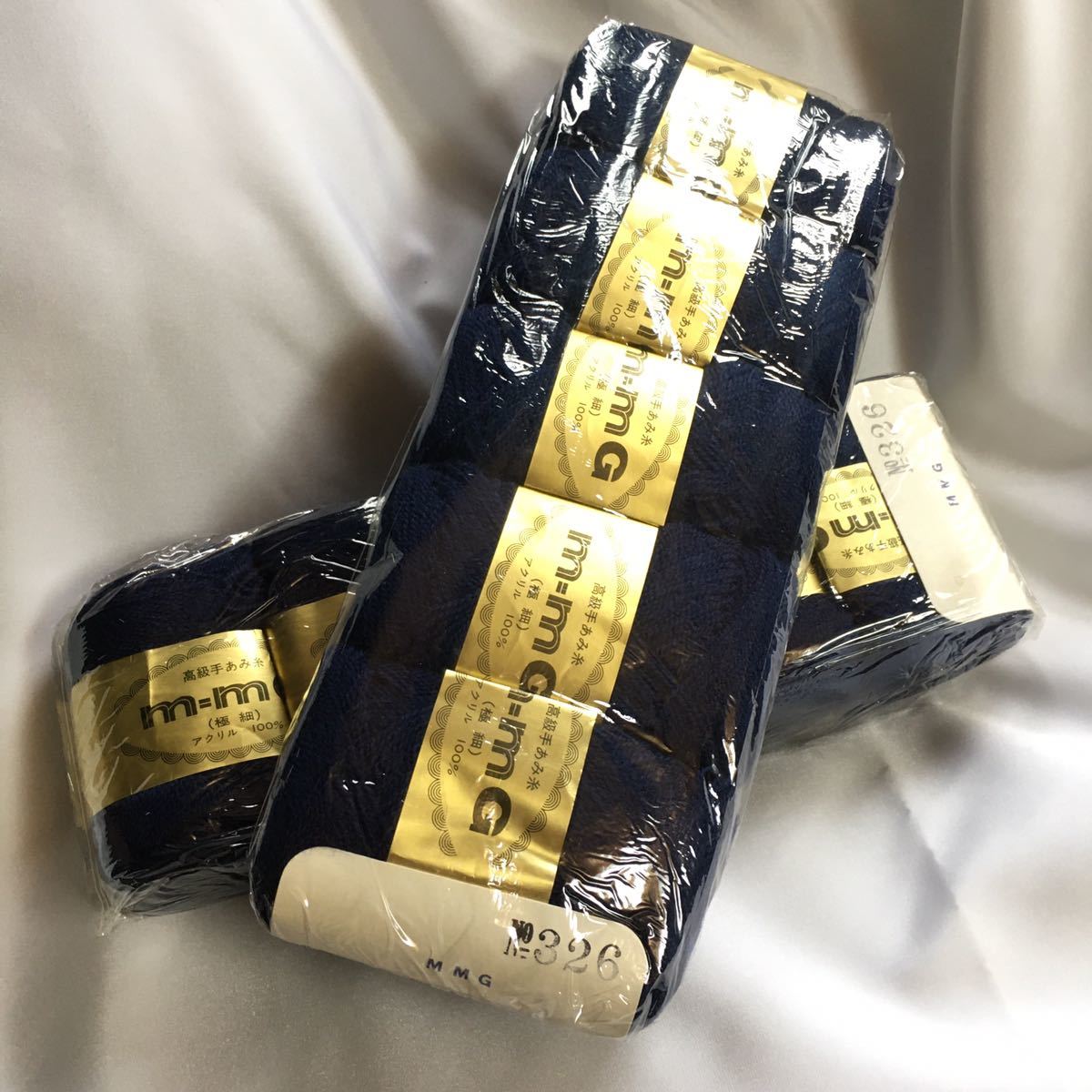 【昭和レトロ】高級手あみ糸 m=mG|青:326|5巻x2個=10巻セット|25g|極細|アクリル 100%【未使用/未開封・未使用】【アンティーク】
