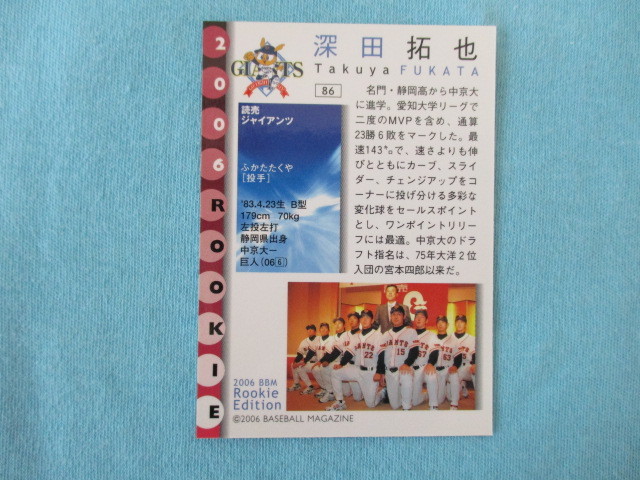 ★BBM 2006★ルーキーエディション〔86 深田拓也 読売ジャイアンツ〕
