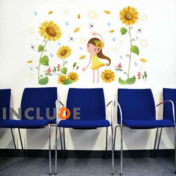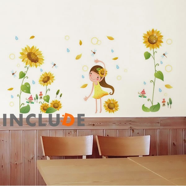 ウォールステッカー ひまわり 花 フラワー 向日葵 妖精 フェアリー 黄色 元気な女の子 キレイ 幸せまみれ