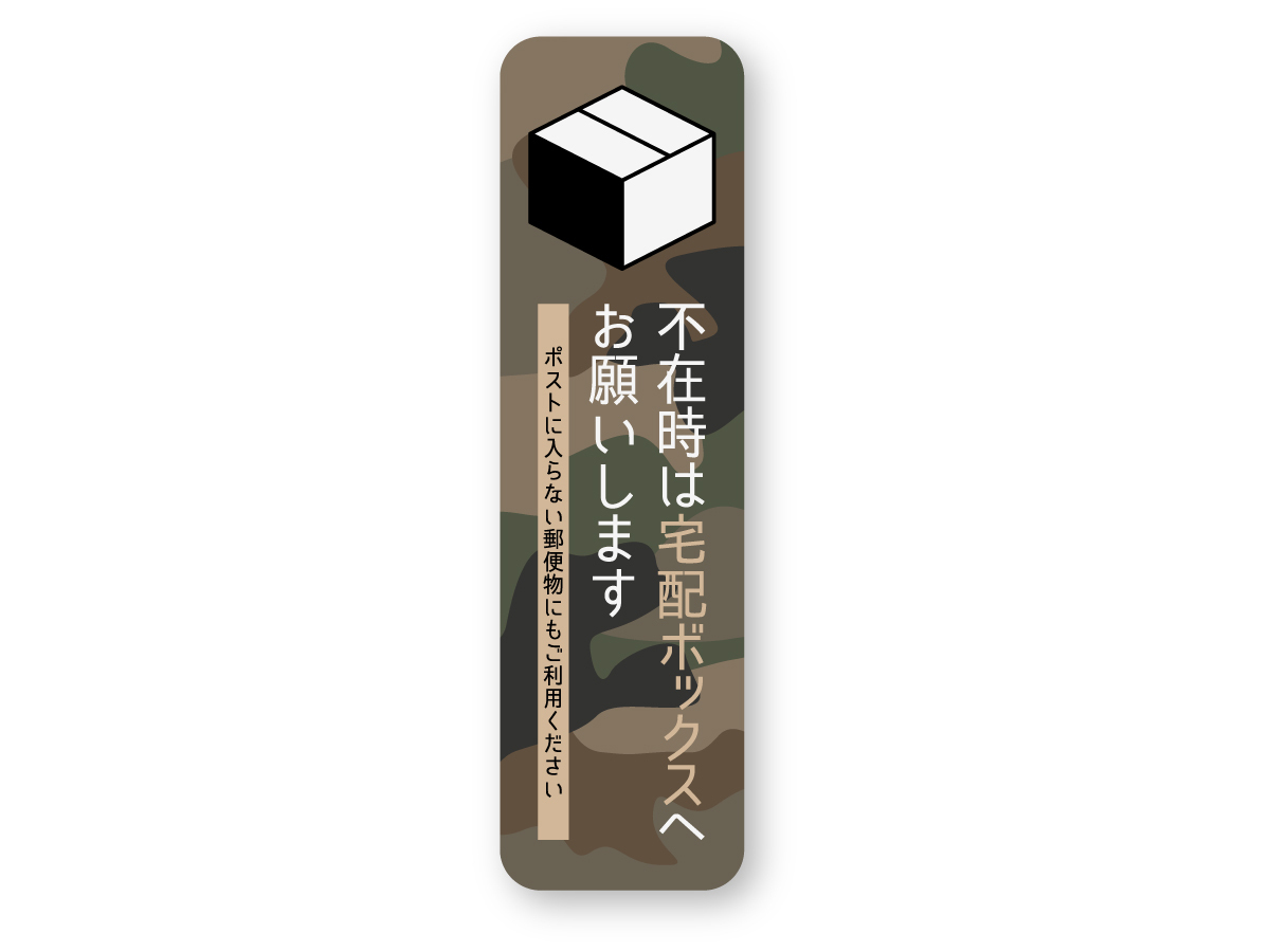 【反射ステッカー工房】不在時は宅配BOXへお願いしますステッカー 縦型 ウッドランドカモ Sサイズ 再帰反射 宅配便 宅配ボックス