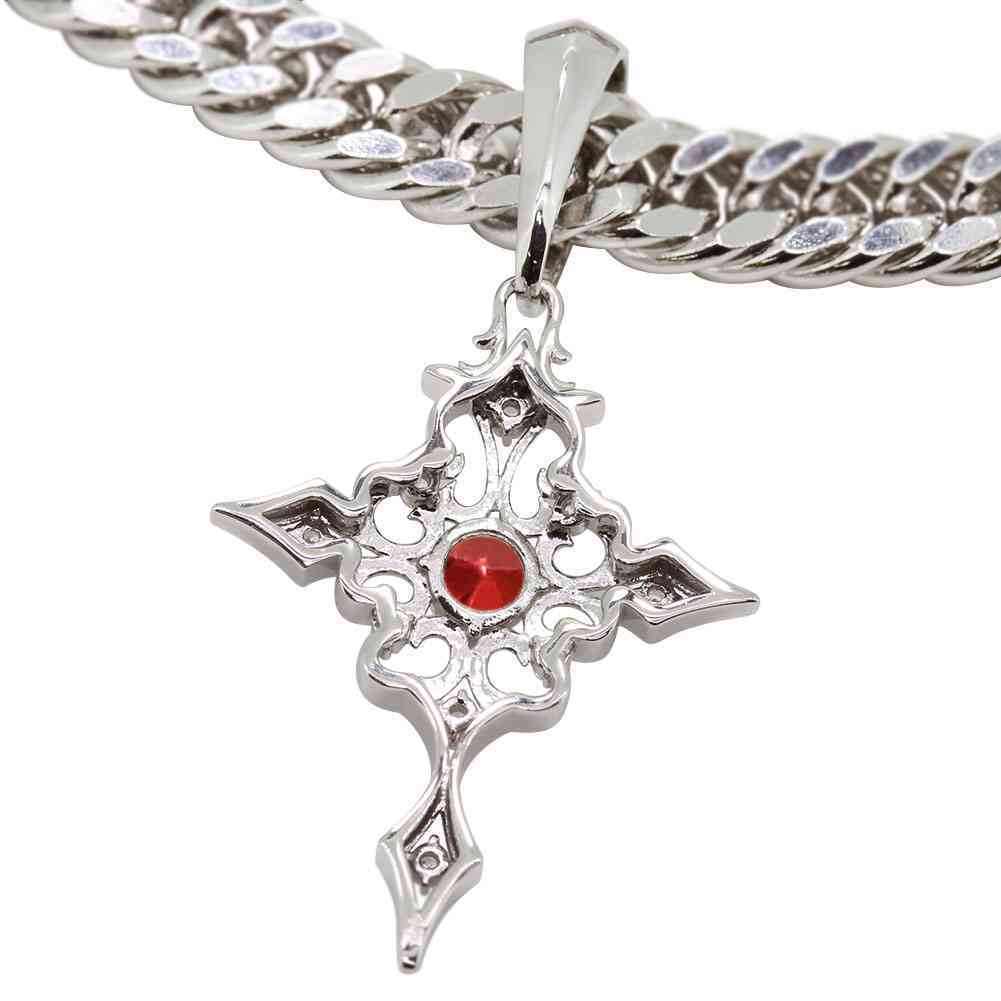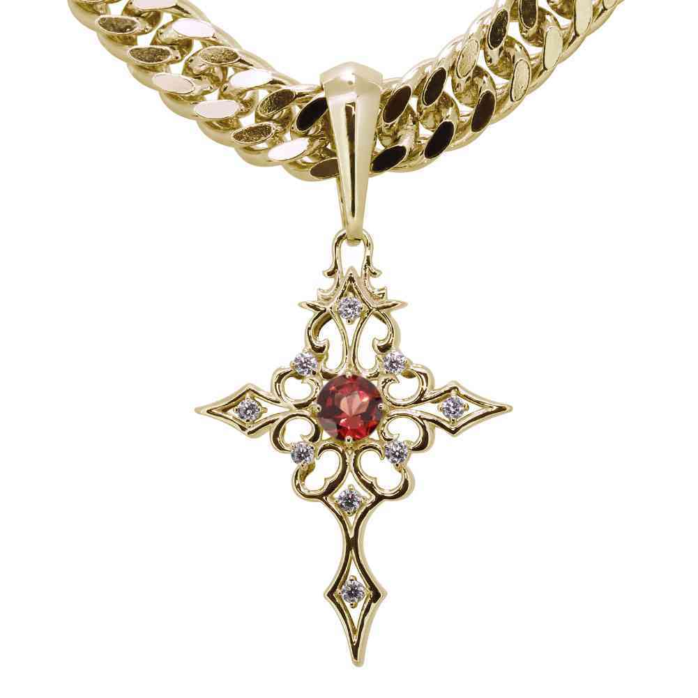 1月誕生石ガーネットを使用した18金製の、クロス(十字架)モチーフの、メンズネックレス(ペンダント)です。