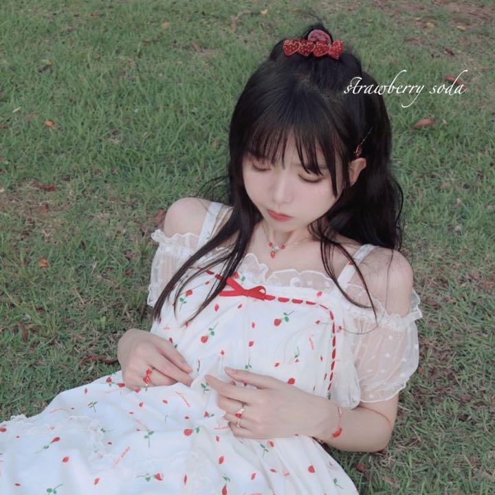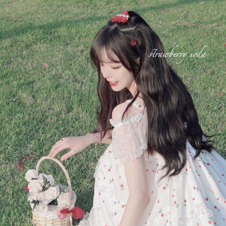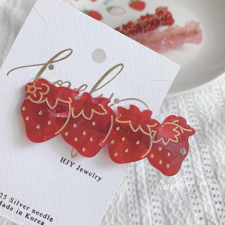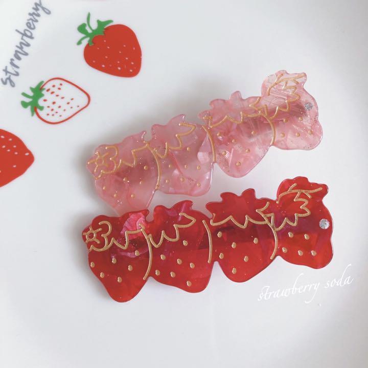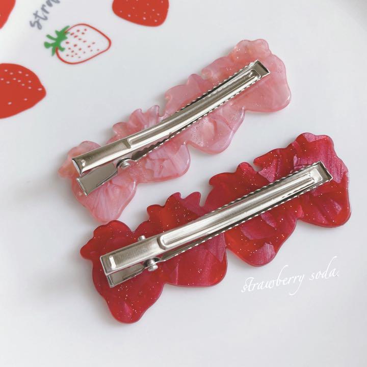 コロンとした赤いイチゴが4つ並んだメルヘンチックなヘアクリップ