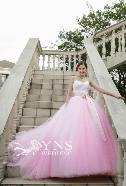 【YNSウエディング】シャーベットカラーの可愛いカラードレス♪7~11号(後ろ編上げ)