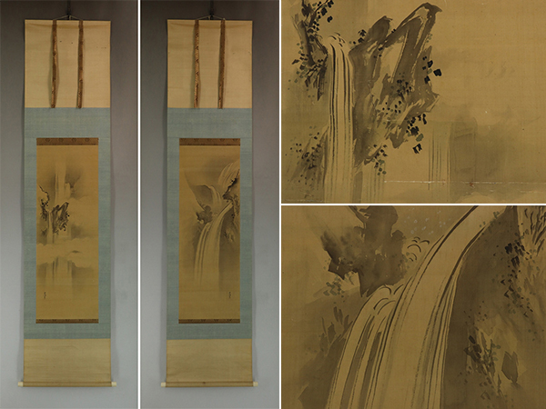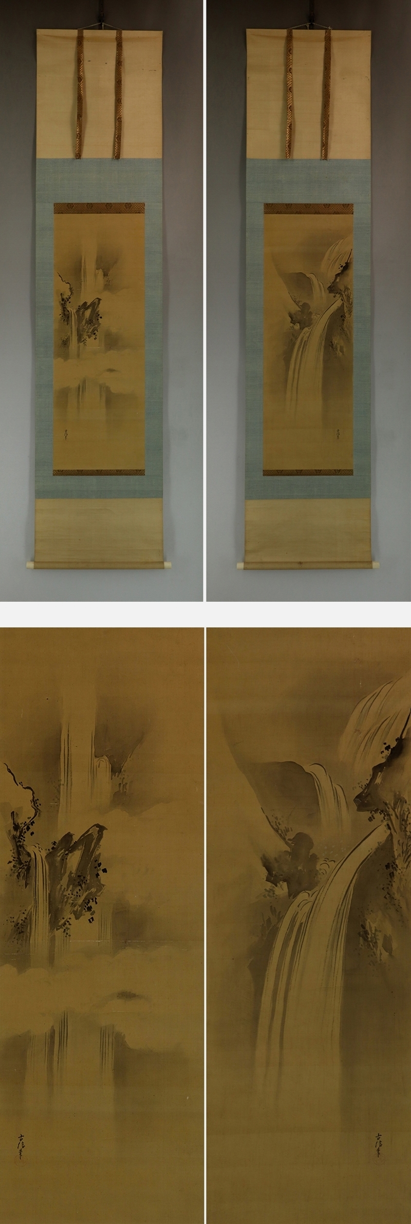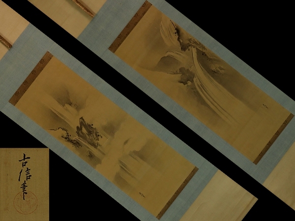 | №2301178【真作】狩野古信【双幅・岩瀧】◆紙本◆合箱◆掛軸 | |