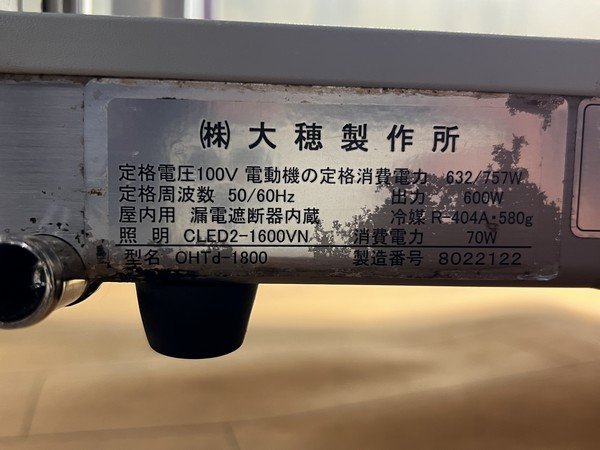 §展示級【 大穂製作所 / OOHO OHTd-1800 多目的コールドショーケース 機械上付 両面扉 ペアガラス LED照明 厨房機器 大型 100V 】N05101