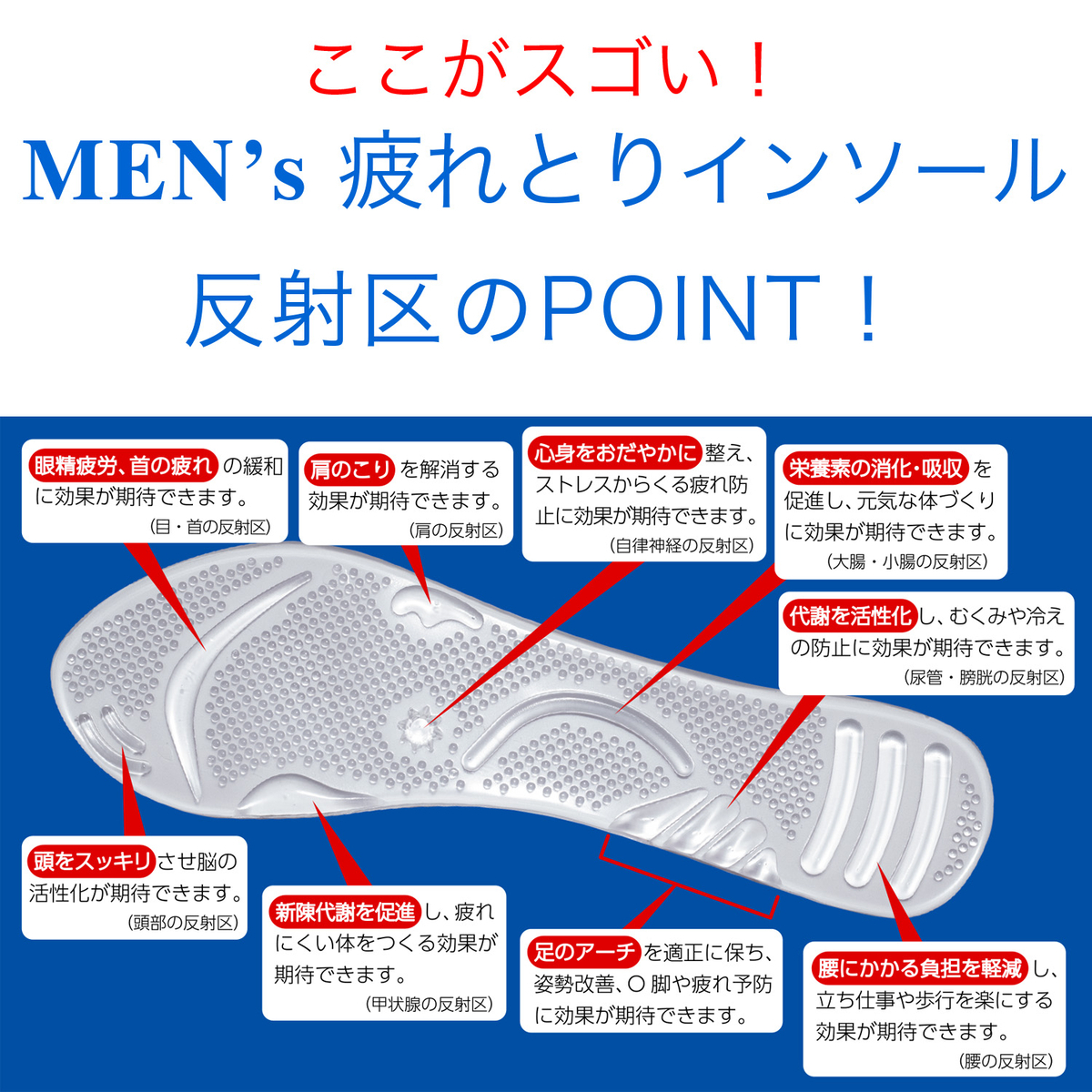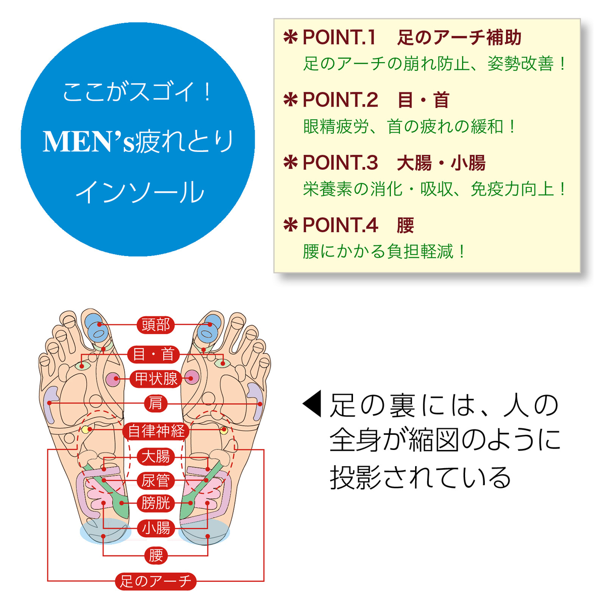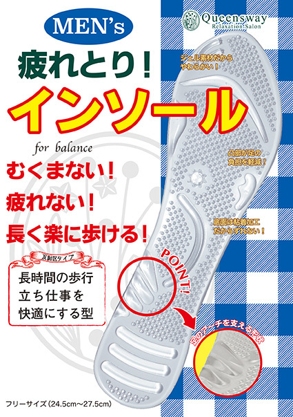 メンズ用疲れとりインソール クイーンズウェイ監修 姿勢改善 首こり改善 腰への負担軽減