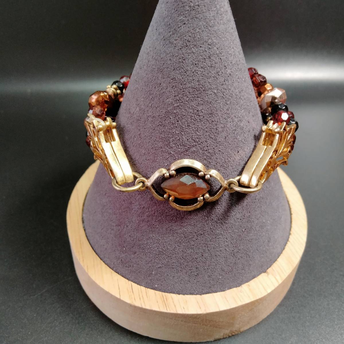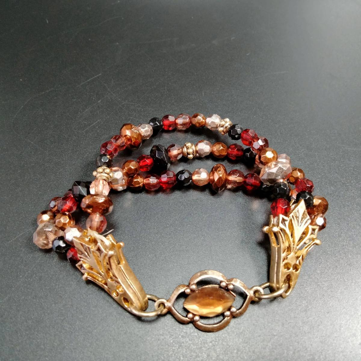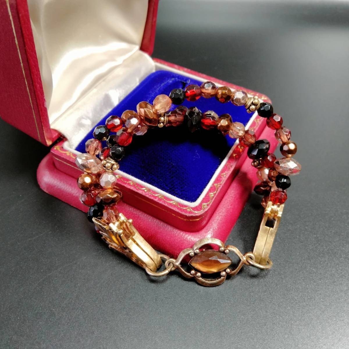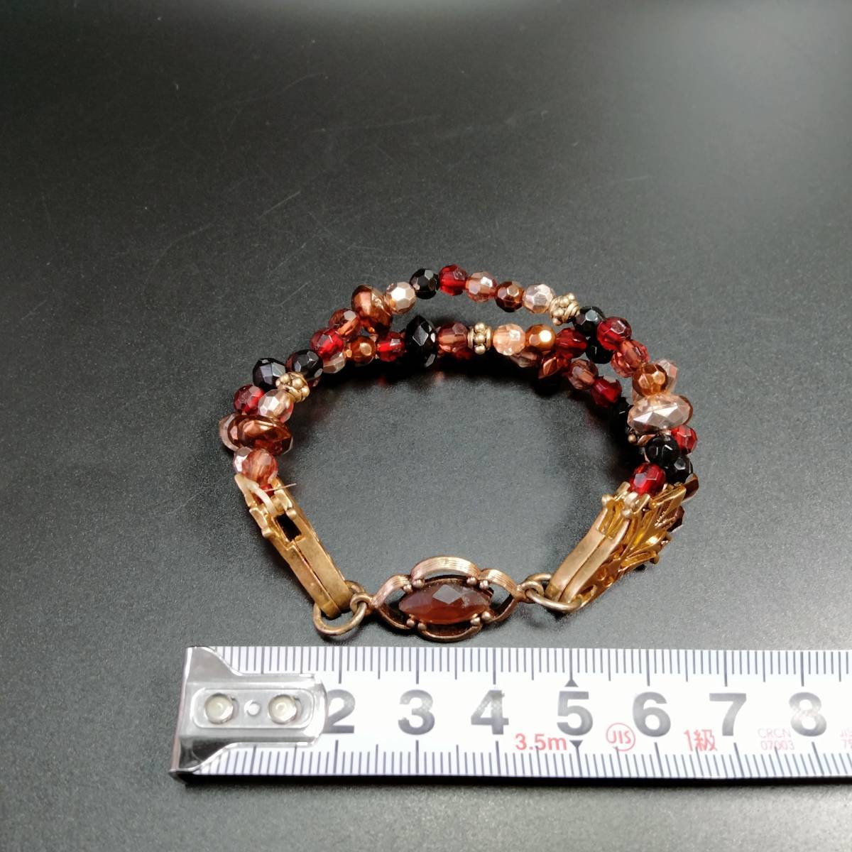 レッド ブラウン ビーズ アールデコ ビンテージ ブレスレット バングル 昭和レトロ コスチューム ジュエリー アクセサリー SDCA57