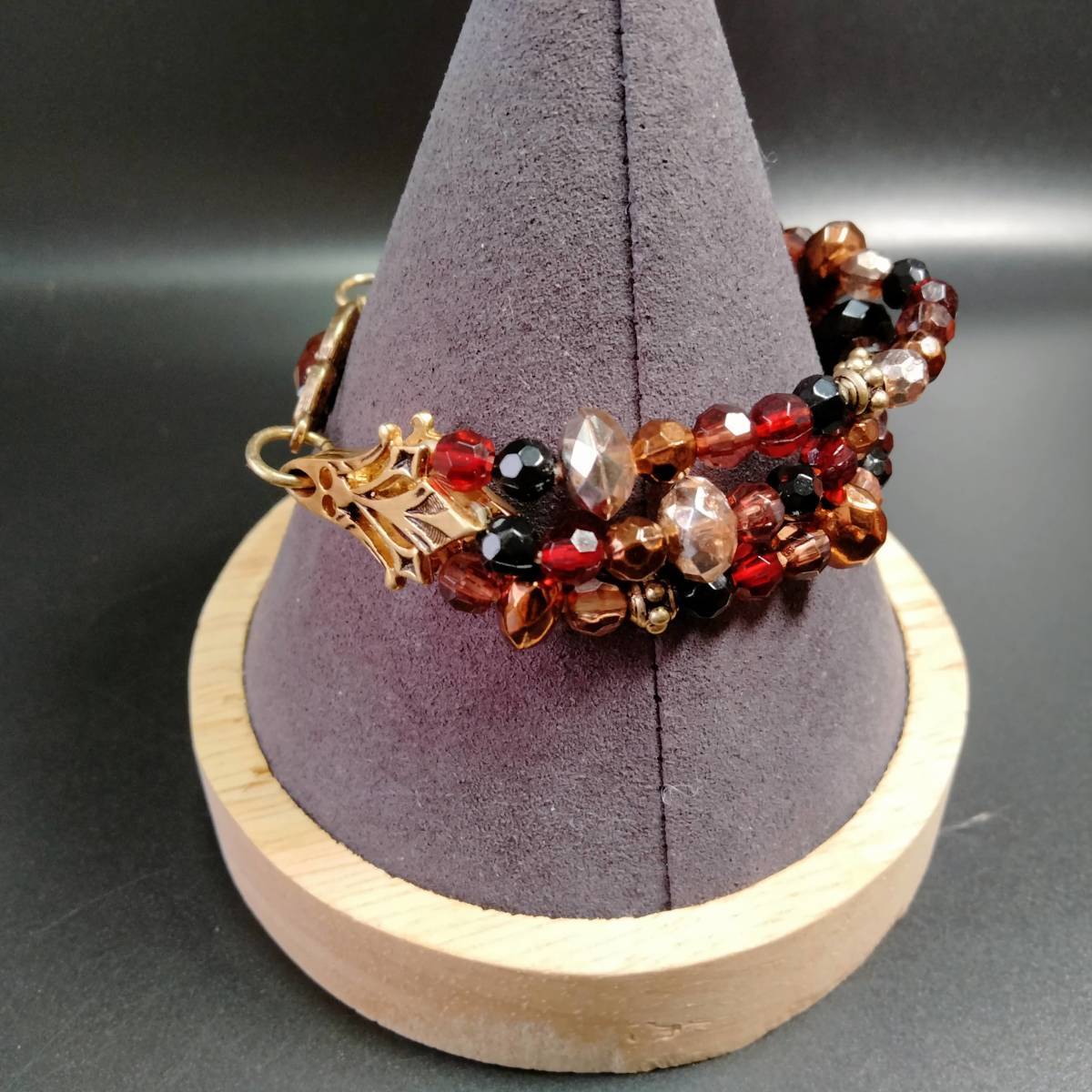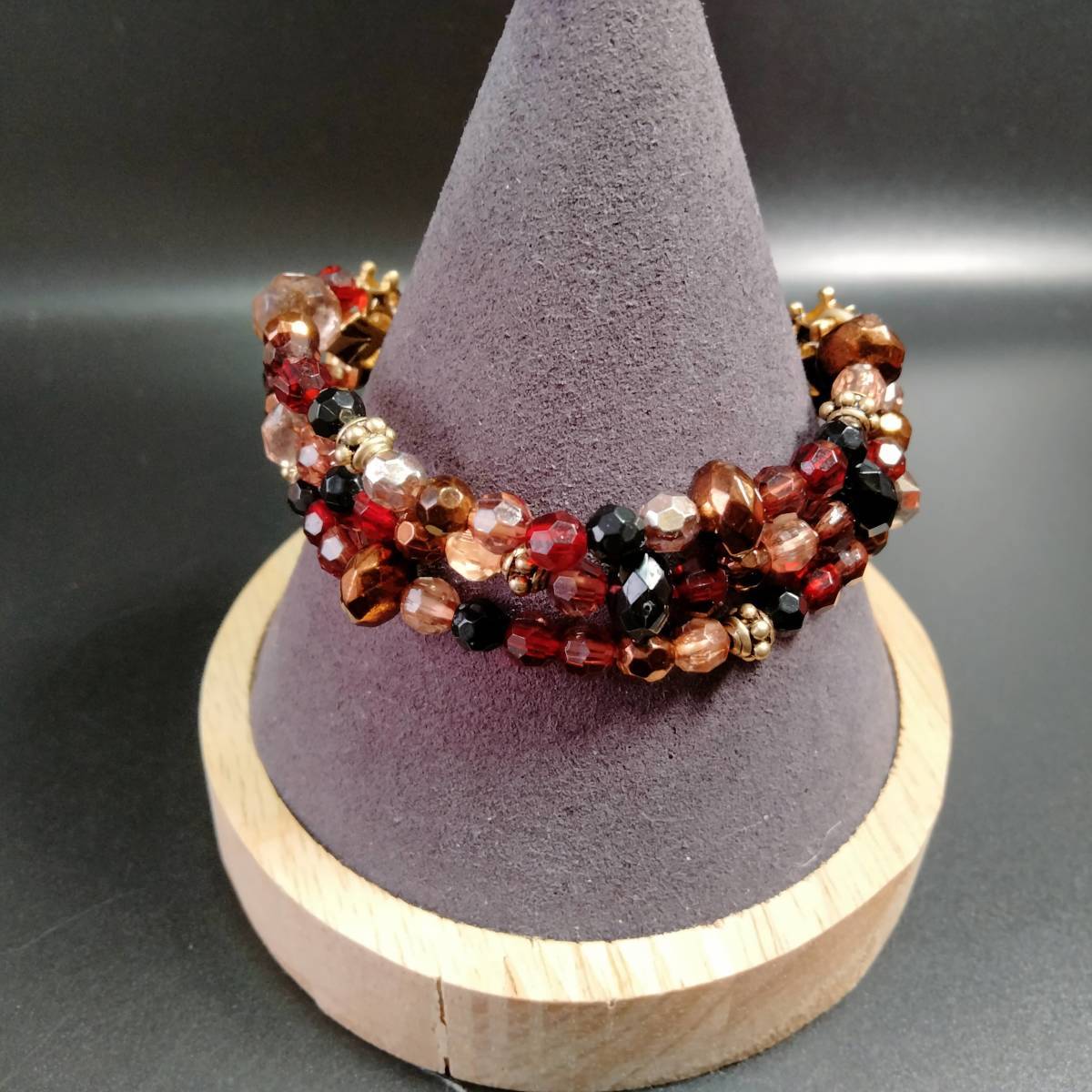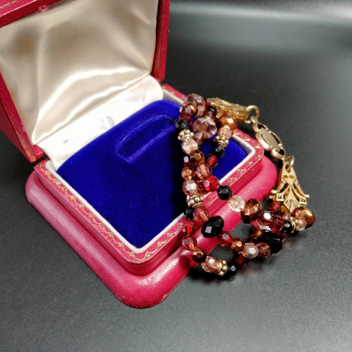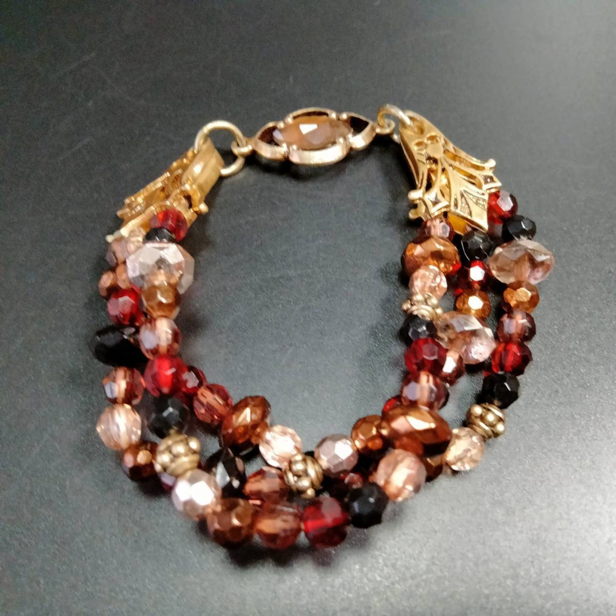レッド ブラウン ビーズ アールデコ ビンテージ ブレスレット バングル 昭和レトロ コスチューム ジュエリー アクセサリー SDCA57