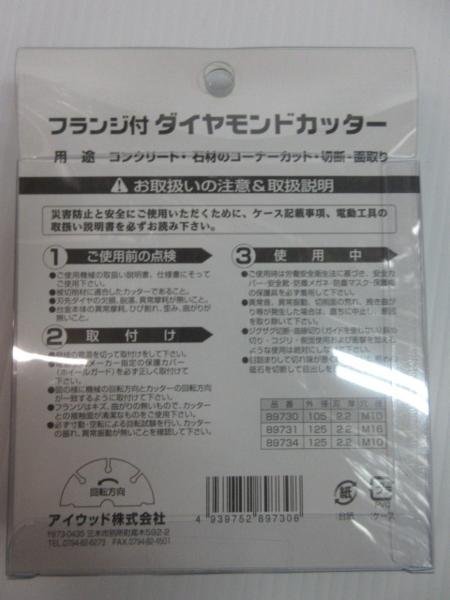 | Iwood ダイヤモンドカッター フランジ付 105mm No.89730 |
