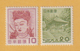 【普通切手】 第1次円単位 《10円・20円》 法隆寺壁画・中尊寺金色堂 (2種)