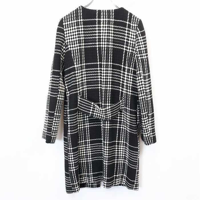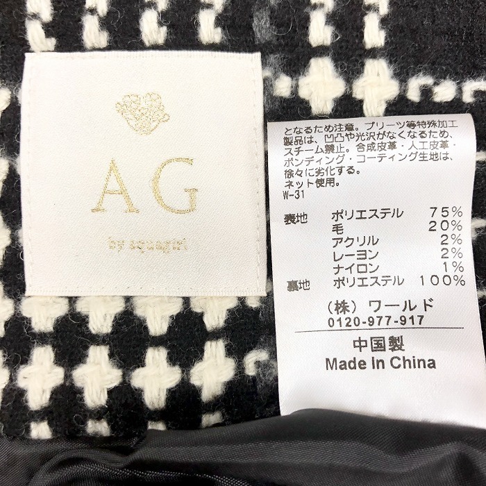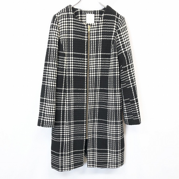 商品タイトル | AG by aquagirl アクアガール S レディース 女性 ジップアップ ノーカラー コート 裏地付き チェック 長袖 ポリ×毛×アクリルなど 黒 |