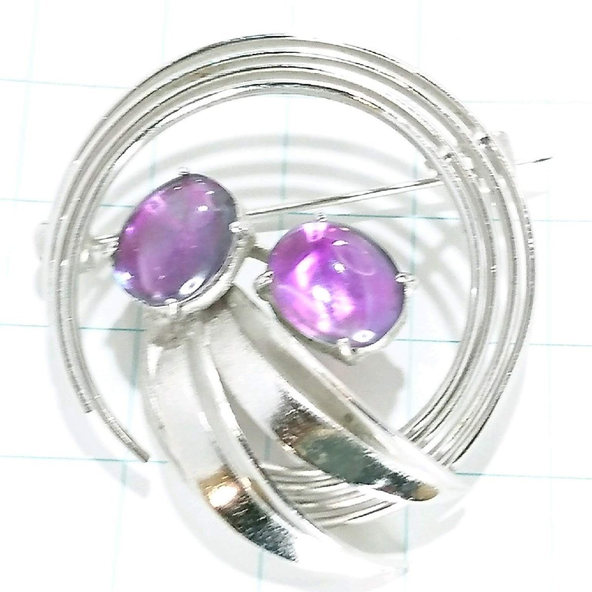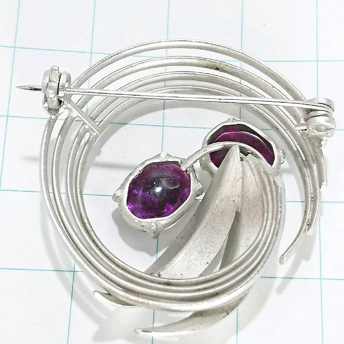 送料無料)ビンテージ☆パープルラインストーン お花モチーフ☆アンティークブローチ A16952